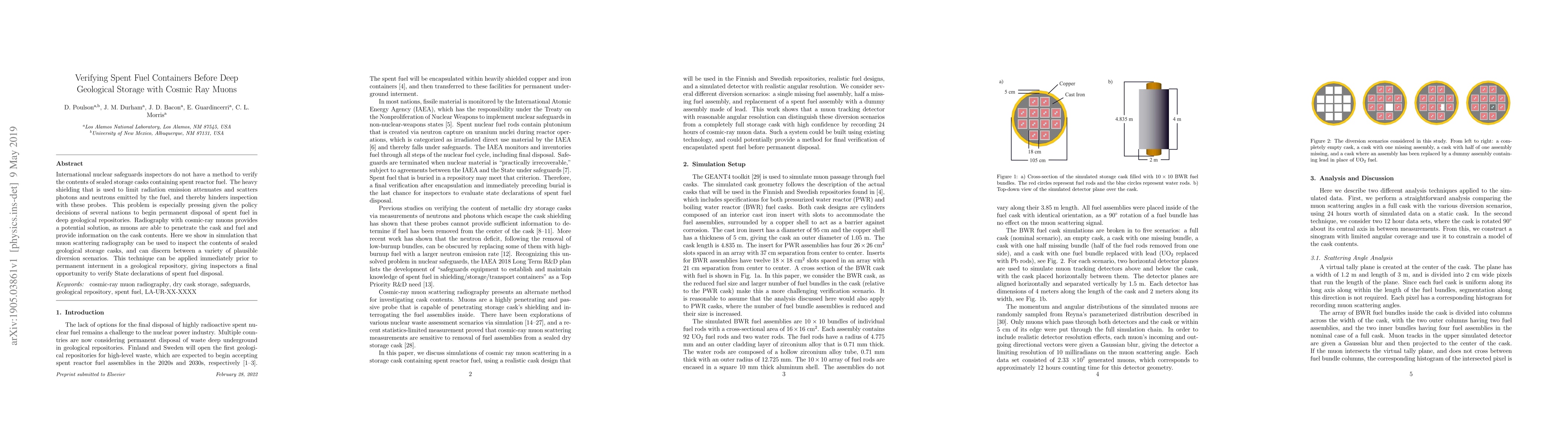 This paper proposes using cosmic-ray muon scattering radiography to verify the contents of sealed spent fuel storage casks, addressing the lack of inspection methods due to heavy shielding. Simulation results demonstrate that muons can penetrate casks and fuel, providing a reliable method to discern between different diversion scenarios before permanent disposal in deep geological repositories.