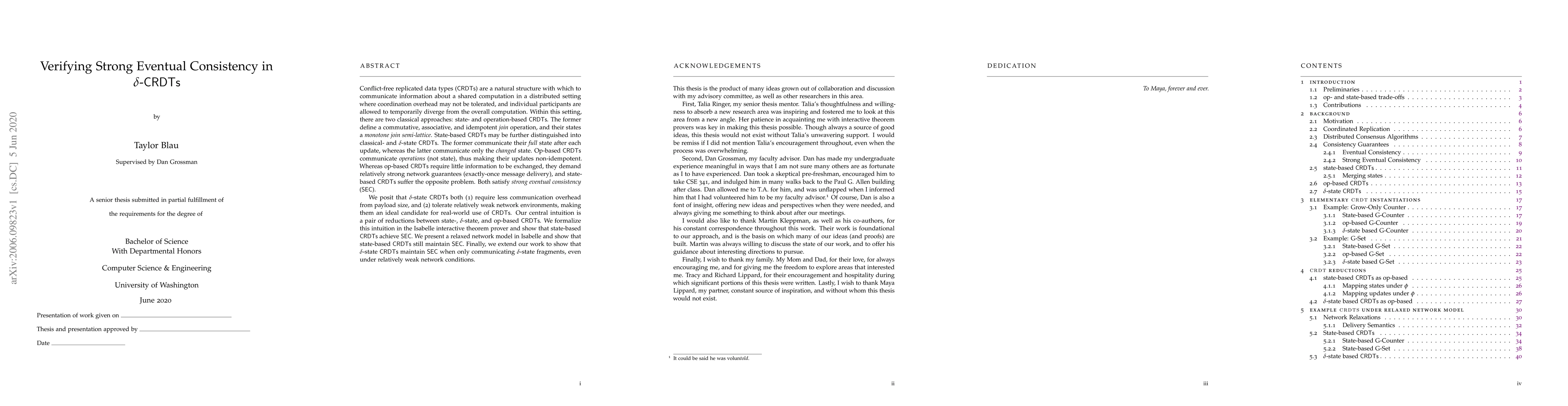 The paper presents formal reductions and proofs in Isabelle showing that $\delta$-state CRDTs achieve SEC, bridging the gap between communication efficiency and consistency guarantees in distributed systems.