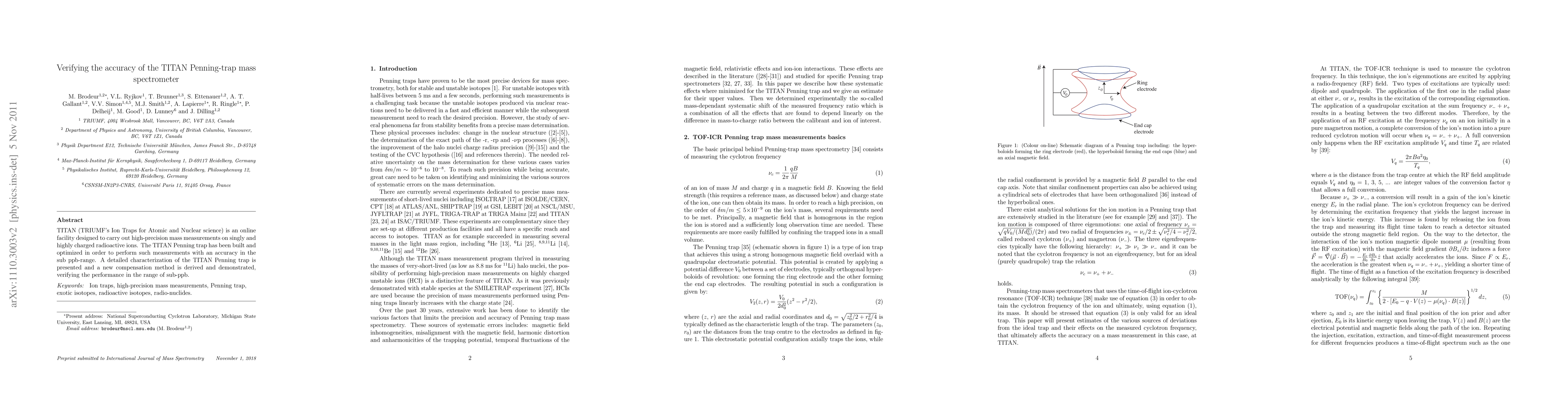 The TITAN Penning trap, designed for high-precision mass measurements on radioactive ions, has been optimized for sub-ppb accuracy. A new compensation method has been developed and demonstrated to verify the trap's performance at this level of precision.