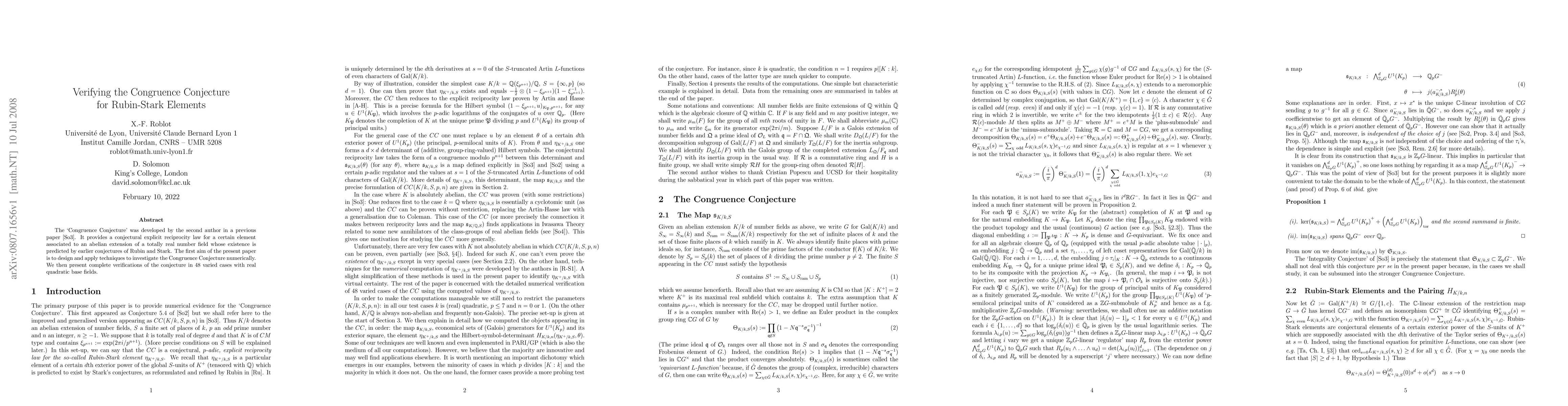 The `Congruence Conjecture' was developed by the second author in a previous paper. It provides a conjectural explicit reciprocity law for a certain element associated to an abelian extension of a totally real number field whose existence is predicted by earlier conjectures of Rubin and Stark. The first aim of the present paper is to design and apply techniques to investigate the Congruence Conjecture numerically. We then present complete verifications of the conjecture in 48 varied cases with real quadratic base fields.