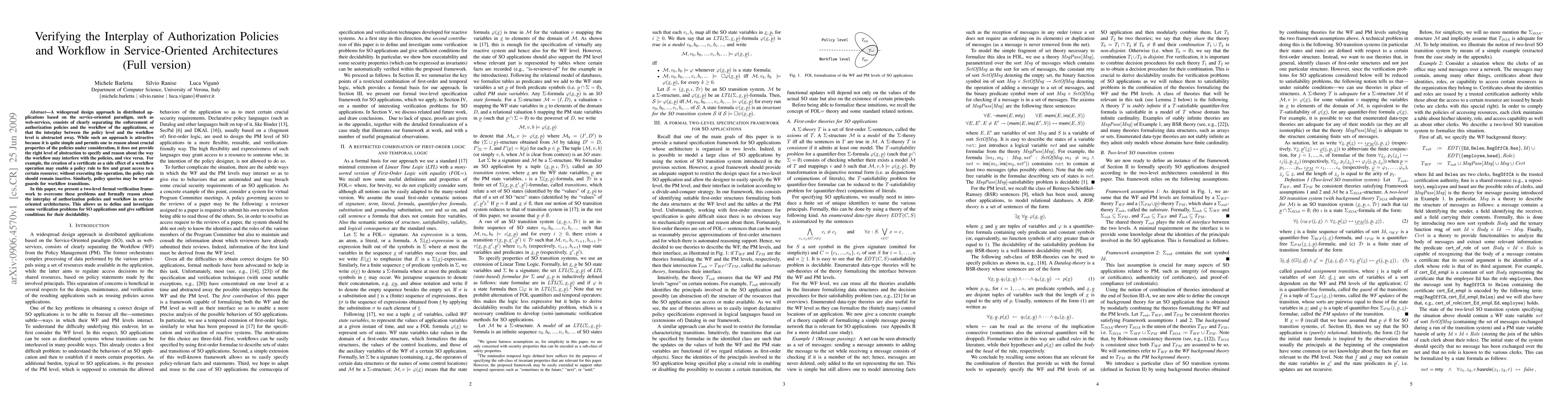 This paper proposes a two-level formal verification framework to address the interplay between authorization policies and workflows in service-oriented architectures, aiming to overcome the limitations of current approaches that separate policy enforcement from workflow management. The framework enables formal reasoning about how workflows can affect policy rules and vice versa, facilitating the investigation of verification problems and decidability conditions for such interactions.