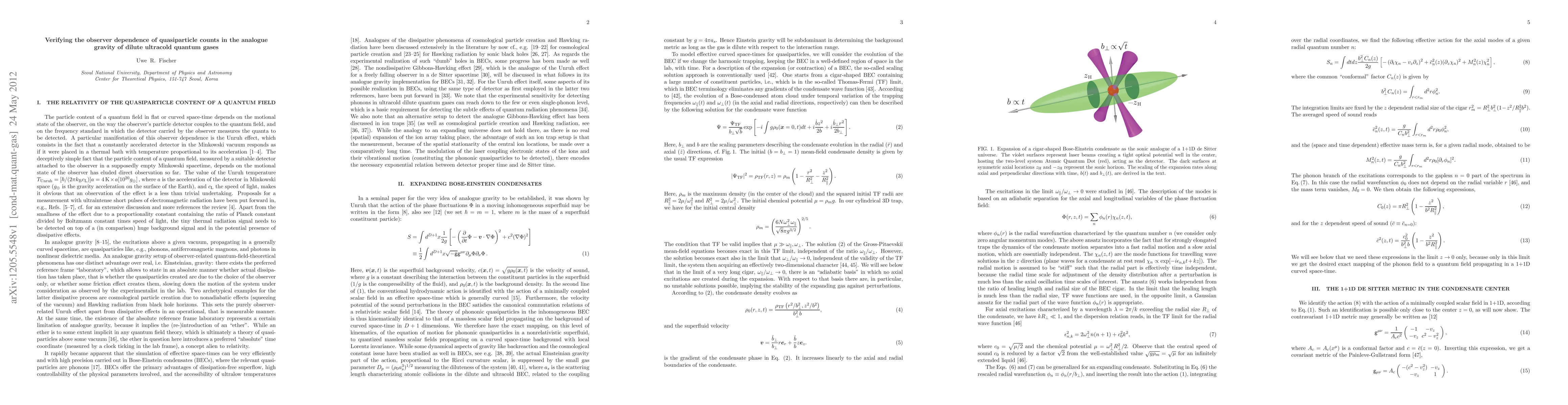 This paper discusses an experimental method to demonstrate that quasiparticle counts in quantum fields, specifically in Bose-Einstein condensates, depend on the observer's motion and detection techniques. It reviews a procedure using quantum-optical means to make this inherent quantum field theory property manifest.
