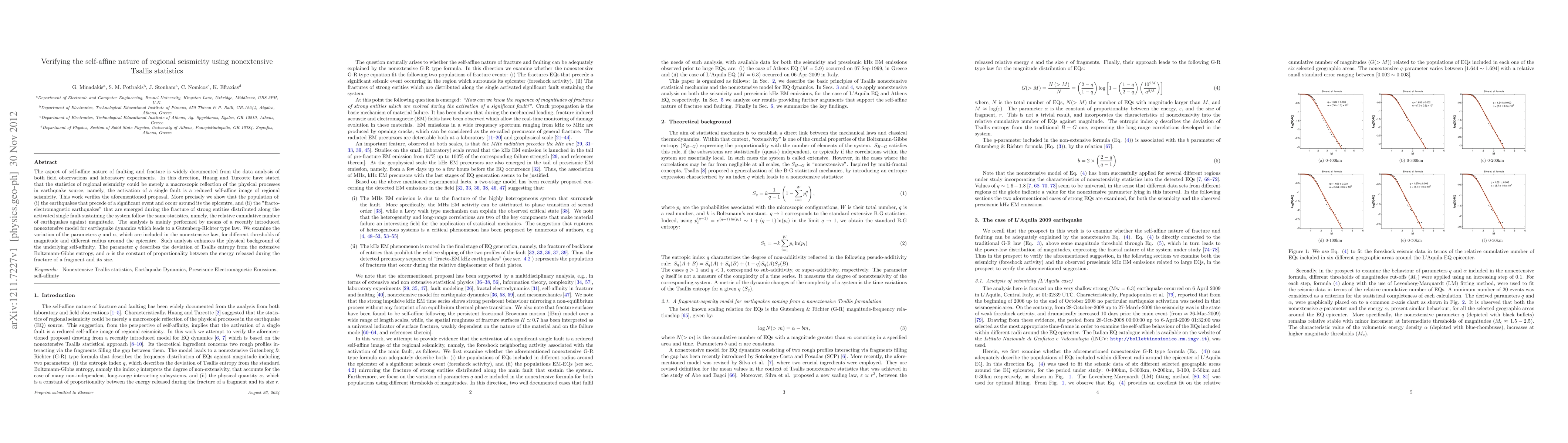 Researchers verify that regional seismicity follows a self-affine nature using nonextensive Tsallis statistics, supporting the idea that earthquake activity reflects physical processes in faulting and fracture.