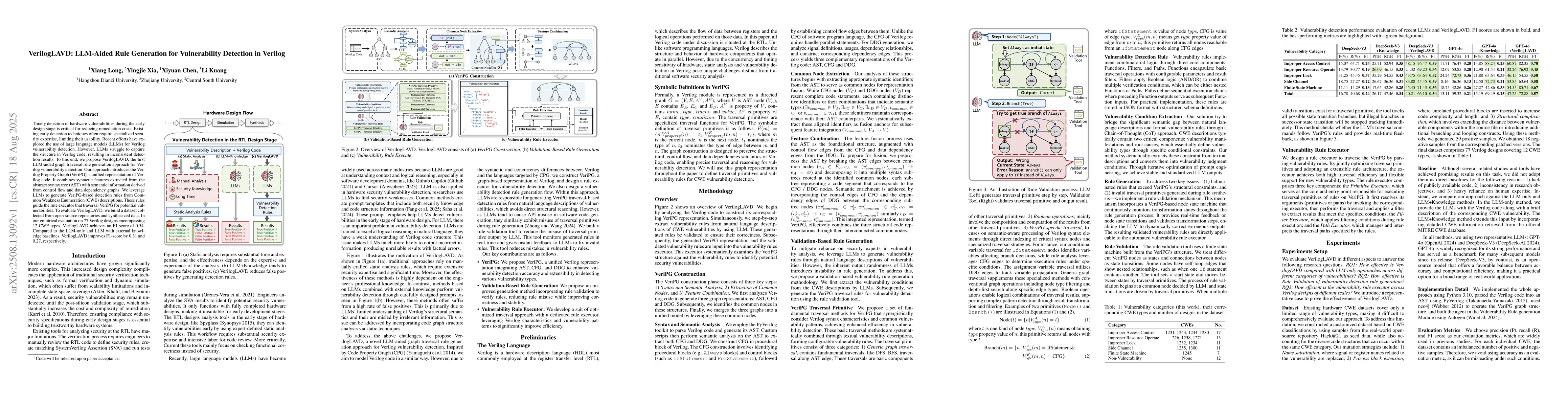 Timely detection of hardware vulnerabilities during the early design stage is critical for reducing remediation costs. Existing early detection techniques often require specialized security expertise, limiting their usability. Recent efforts have explored the use of large language models (LLMs) for Verilog vulnerability detection. However, LLMs struggle to capture the structure in Verilog code, resulting in inconsistent detection results. To this end, we propose VerilogLAVD, the first LLM-aided graph traversal rule generation approach for Verilog vulnerability detection. Our approach introduces the Verilog Property Graph (VeriPG), a unified representation of Verilog code. It combines syntactic features extracted from the abstract syntax tree (AST) with semantic information derived from control flow and data dependency graphs. We leverage LLMs to generate VeriPG-based detection rules from Common Weakness Enumeration (CWE) descriptions. These rules guide the rule executor that traversal VeriPG for potential vulnerabilities. To evaluate VerilogLAVD, we build a dataset collected from open-source repositories and synthesized data. In our empirical evaluation on 77 Verilog designs encompassing 12 CWE types, VerilogLAVD achieves an F1-score of 0.54. Compared to the LLM-only and LLM with external knowledge baselines, VerilogLAVD improves F1-score by 0.31 and 0.27, respectively.
