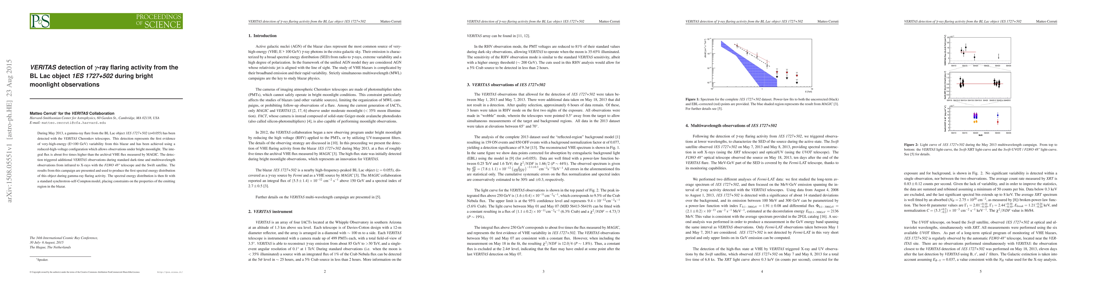 The VERITAS Cherenkov telescopes detected a gamma-ray flare from the BL Lac object 1ES 1727+502 during May 2013, marking the first evidence of very-high-energy variability from this blazar. The flare's integral flux was five times higher than previous measurements, prompting additional observations and analysis to produce the first spectral energy distribution during flaring activity.