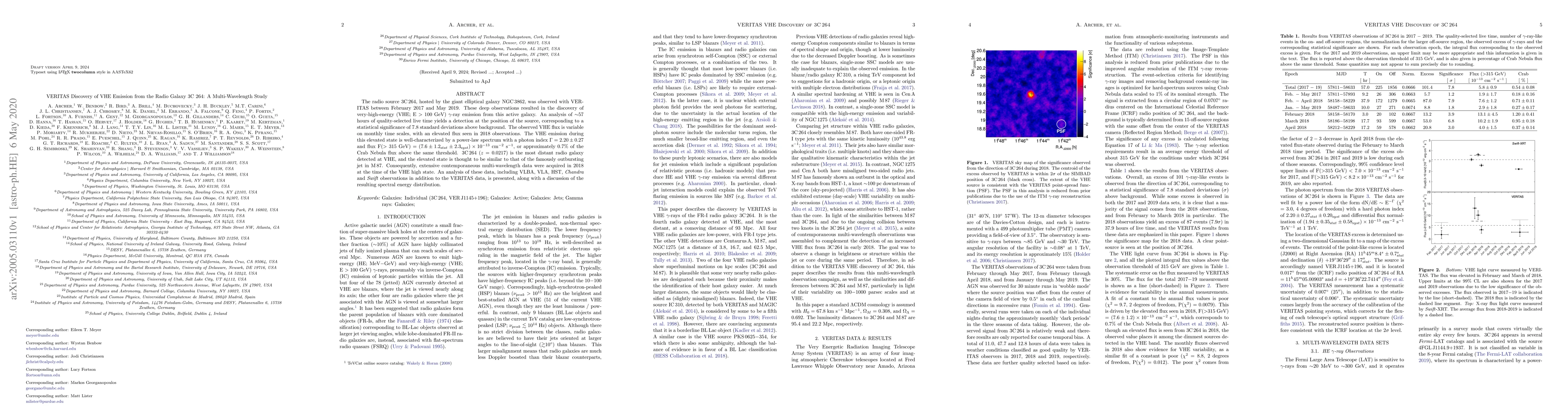 Researchers using VERITAS discovered VHE gamma-ray emission from radio galaxy 3C 264, with a spectral energy distribution that shows similarities to M87's jet, providing new insights into the most distant detected radio galaxy.