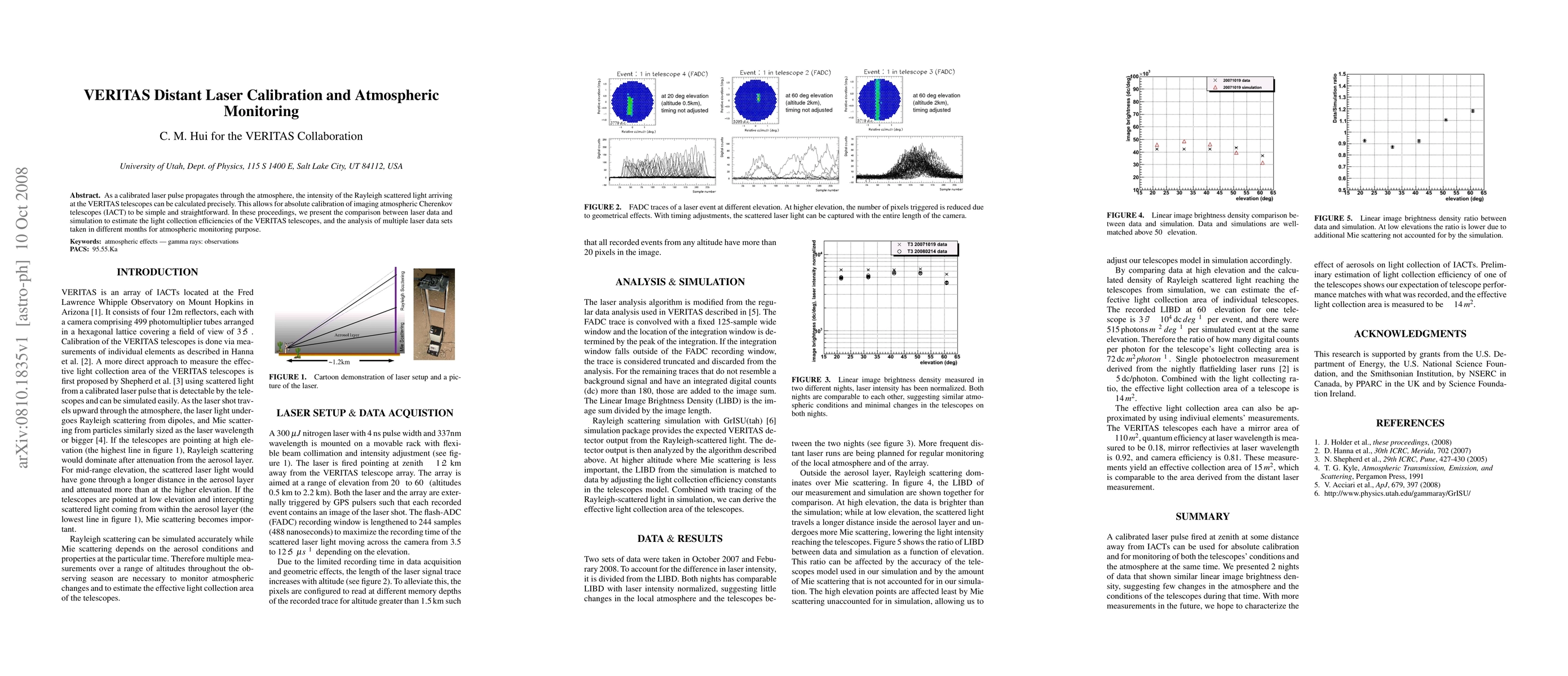 This paper details the use of a calibrated laser pulse for the precise calibration of VERITAS imaging atmospheric Cherenkov telescopes (IACT) by measuring the Rayleigh scattered light. It also analyzes multiple laser datasets to monitor atmospheric conditions over different months.