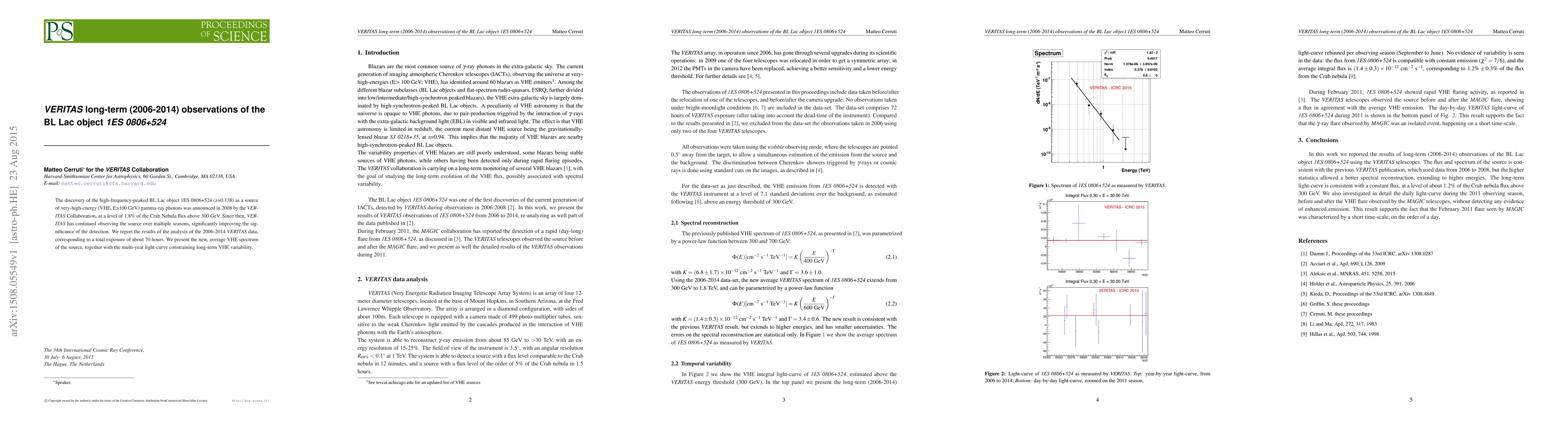 The discovery of the high-frequency-peaked BL Lac object 1ES 0806+524 (z=0.138) as a source of very-high-energy (VHE, E>100 GeV) gamma-ray photons was announced in 2008 by the VERITAS Collaboration, at a level of 1.8% of the Crab Nebula flux above 300 GeV. Since then, VERITAS has continued observing the source over multiple seasons, significantly improving the significance of the detection. We report the results of the analysis of the 2006-2014 VERITAS data, corresponding to a total exposure of about 70 hours. We present the new, average VHE spectrum of the source, together with the multi-year light-curve constraining long-term VHE variability.