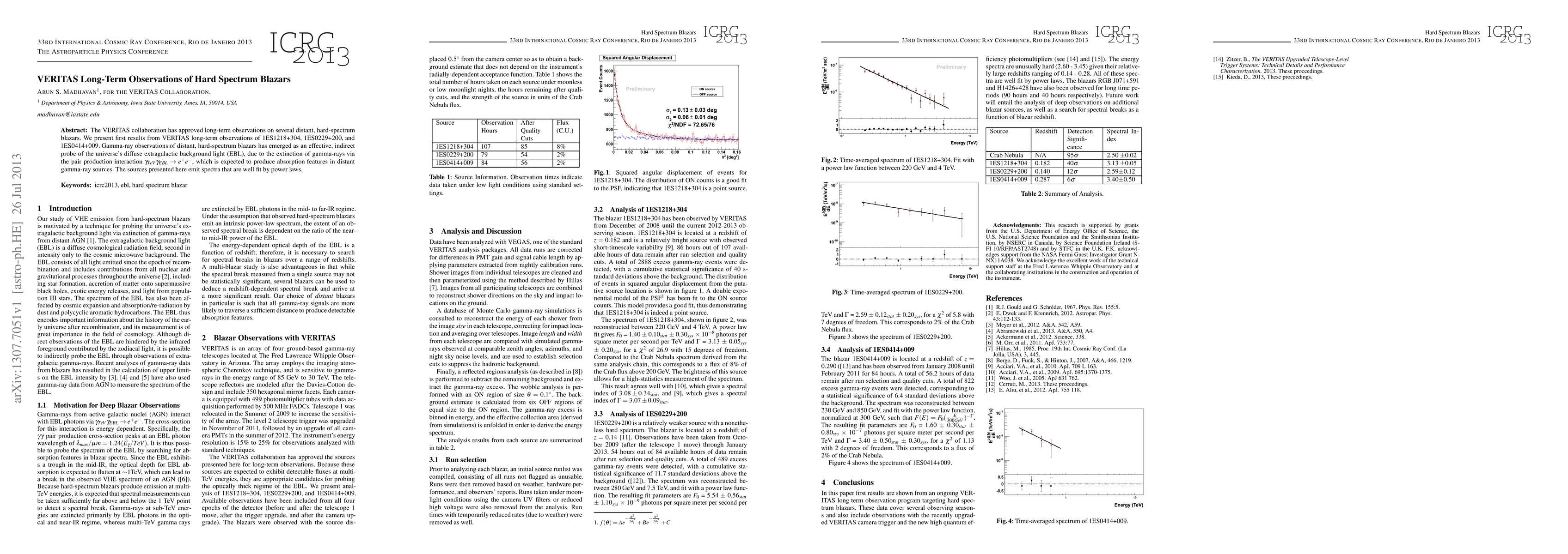 The VERITAS collaboration reports initial findings from long-term observations of three distant, hard-spectrum blazars, revealing significant gamma-ray spectra that serve as an indirect probe for the universe's diffuse extragalactic background light due to gamma-ray absorption features.