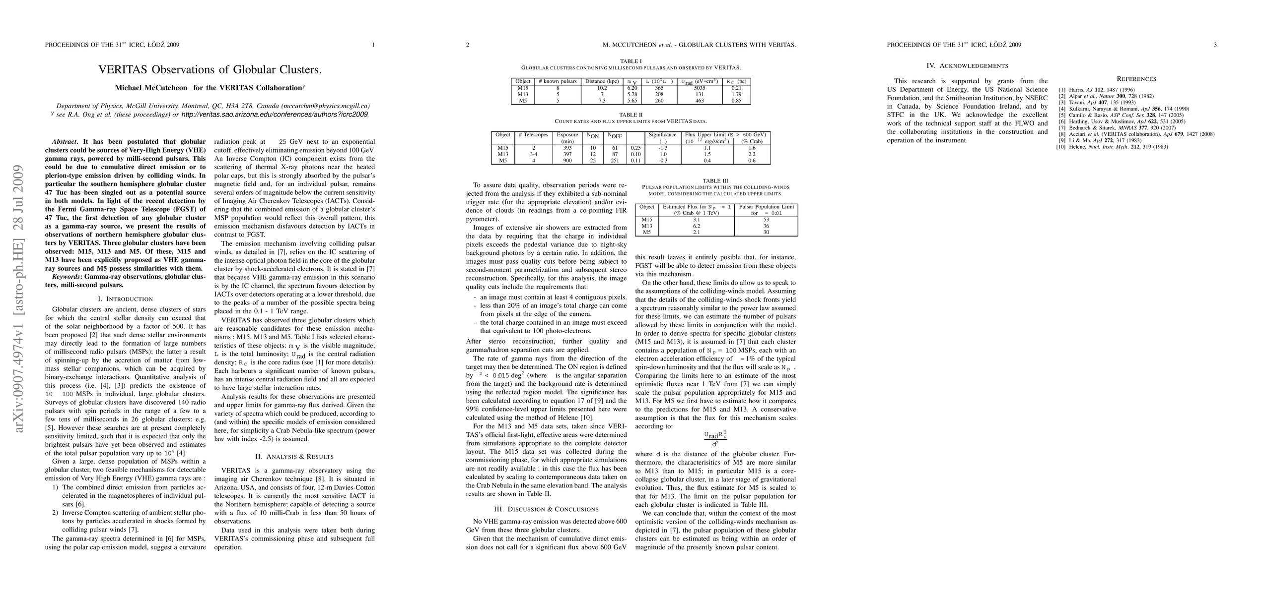 VERITAS observations of northern hemisphere globular clusters M15, M13, and M5 did not detect Very-High Energy (VHE) gamma rays, challenging their potential as VHE gamma-ray sources, unlike the southern cluster 47 Tuc detected by the Fermi Gamma-ray Space Telescope.