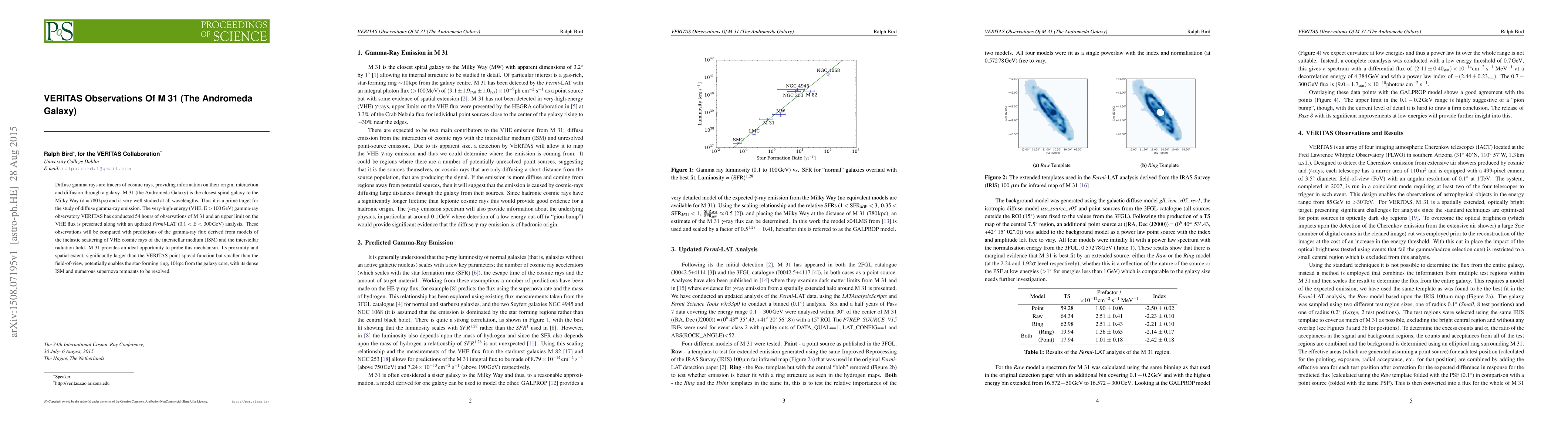 The VERITAS observatory has conducted 54 hours of observations of M 31, the Andromeda Galaxy, to study its diffuse very-high-energy gamma-ray emission, providing an upper limit on the VHE flux and comparing it with Fermi data and models of cosmic ray interactions. M 31's proximity makes it ideal for resolving its star-forming regions and supernova remnants.