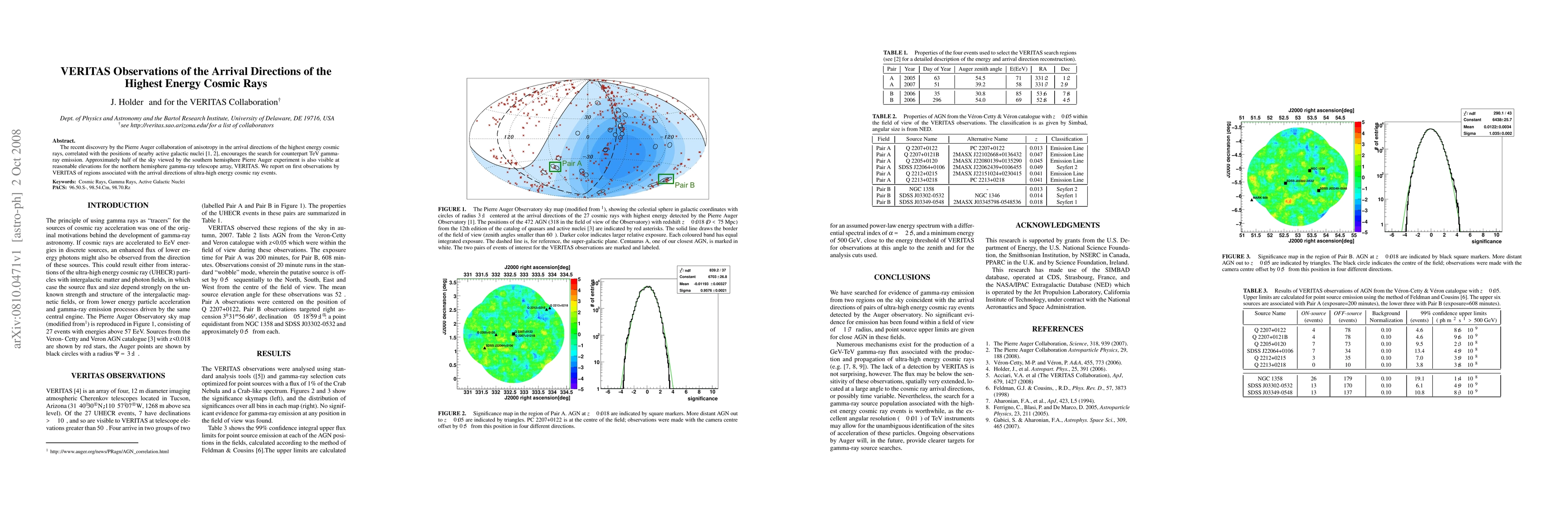 VERITAS observations seek to identify TeV gamma-ray emissions from regions correlated with the arrival directions of ultra-high energy cosmic rays, following the Pierre Auger collaboration's discovery of anisotropy linked to nearby active galactic nuclei. Initial VERITAS findings provide no significant gamma-ray emission in the observed regions.