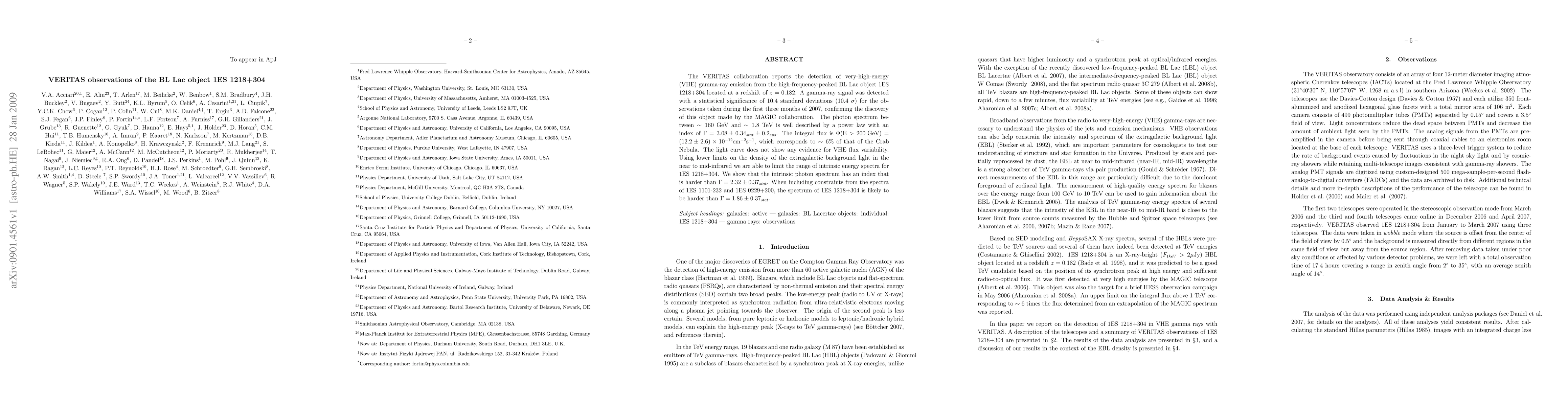 The VERITAS collaboration detected VHE gamma-ray emission from BL Lac object 1ES 1218+304, confirming its discovery and measuring an intrinsic photon spectrum index of 3.08 with a variability-free light curve.