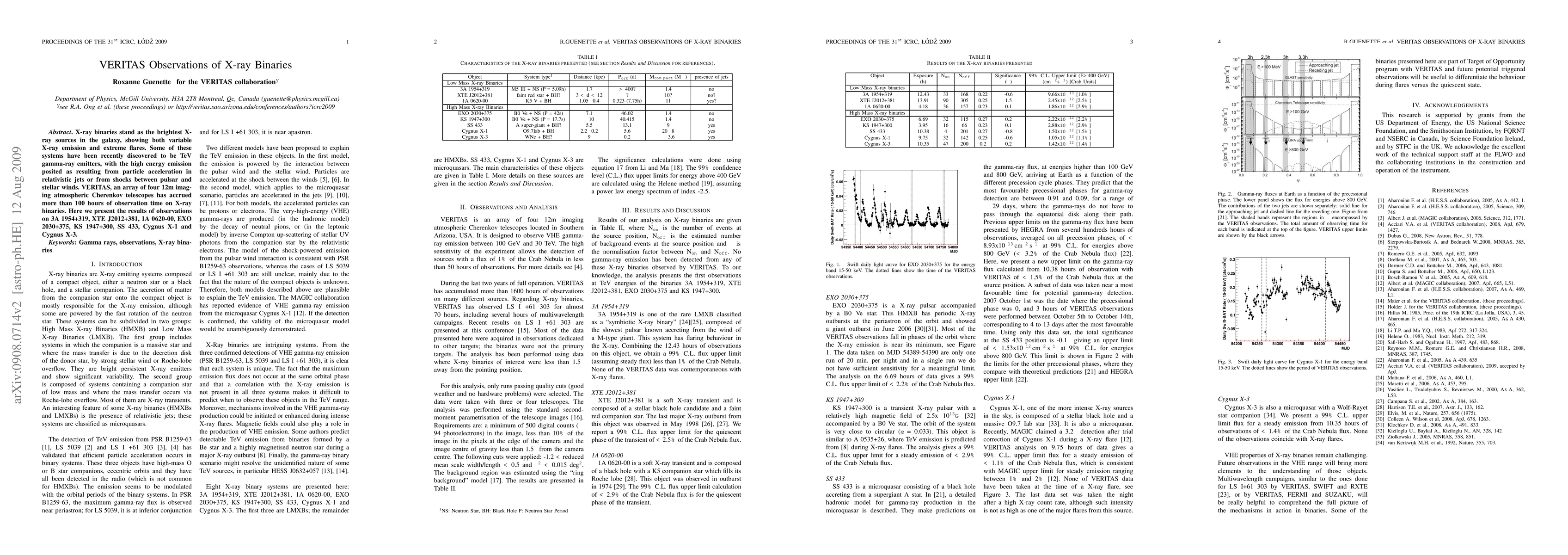The VERITAS array has observed several X-ray binaries, revealing TeV gamma-ray emissions likely from relativistic jets or shocks in pulsar-stellar wind interactions. Key findings include detailed observations of systems like 3A 1954+319 and Cygnus X-3.