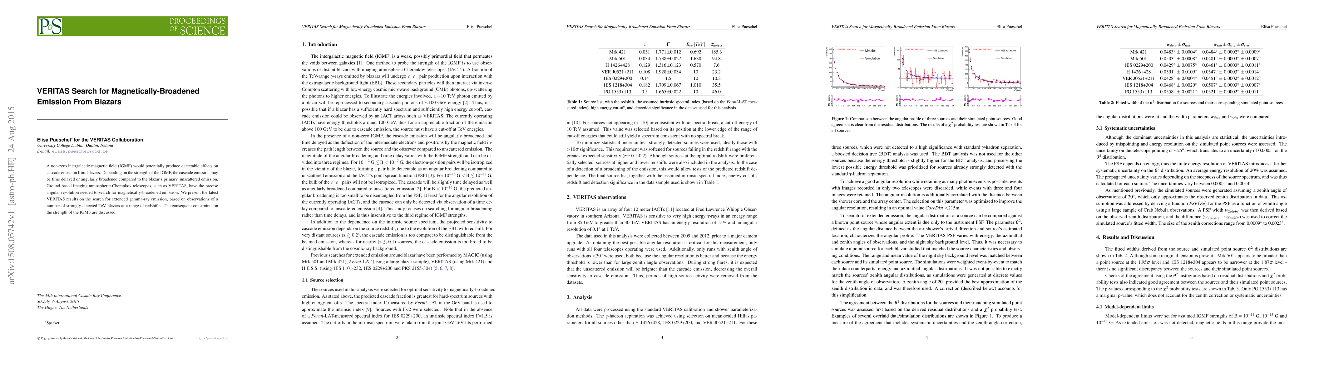 The VERITAS observatory searched for extended gamma-ray emission from blazars, aiming to detect effects of a non-zero intergalactic magnetic field (IGMF) that could cause time delays or angular broadening in cascade emission. The study provides constraints on the strength of the IGMF based on observations of several TeV blazars.