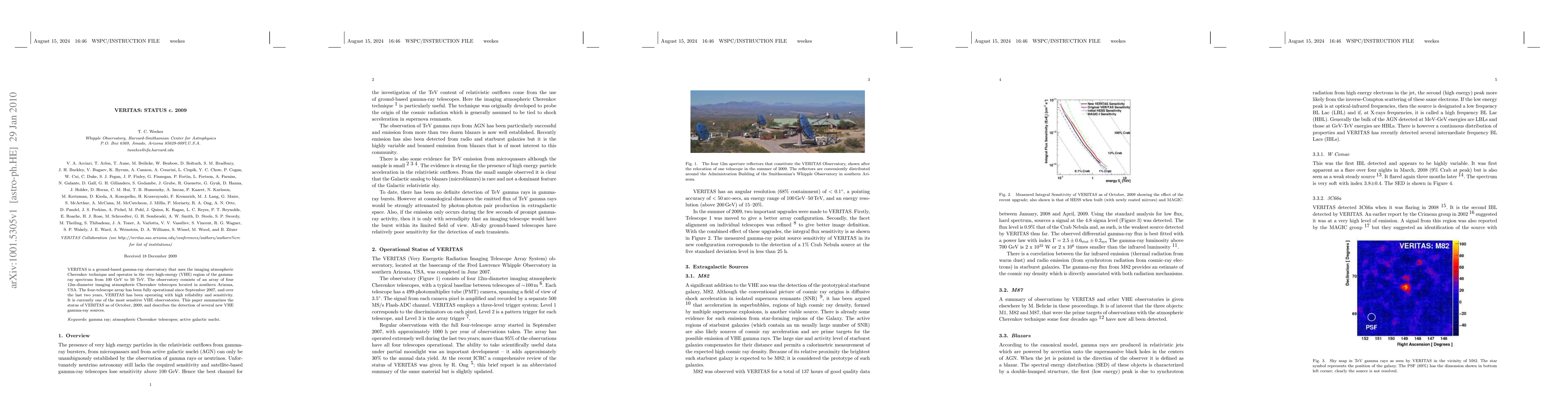 VERITAS, a ground-based gamma-ray observatory in southern Arizona, has been fully operational since 2007 and is one of the most sensitive in the very high-energy gamma-ray spectrum. As of October 2009, it has detected several new VHE gamma-ray sources.