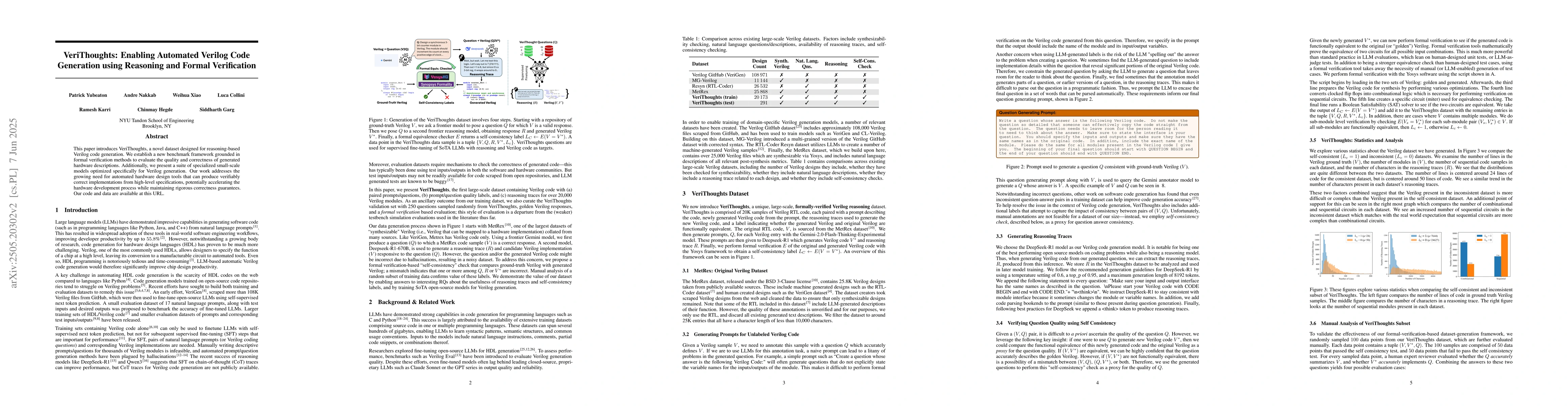 The paper introduces VeriThoughts, a dataset for reasoning-based Verilog code generation, and establishes a benchmark framework using formal verification methods to assess generated hardware descriptions.