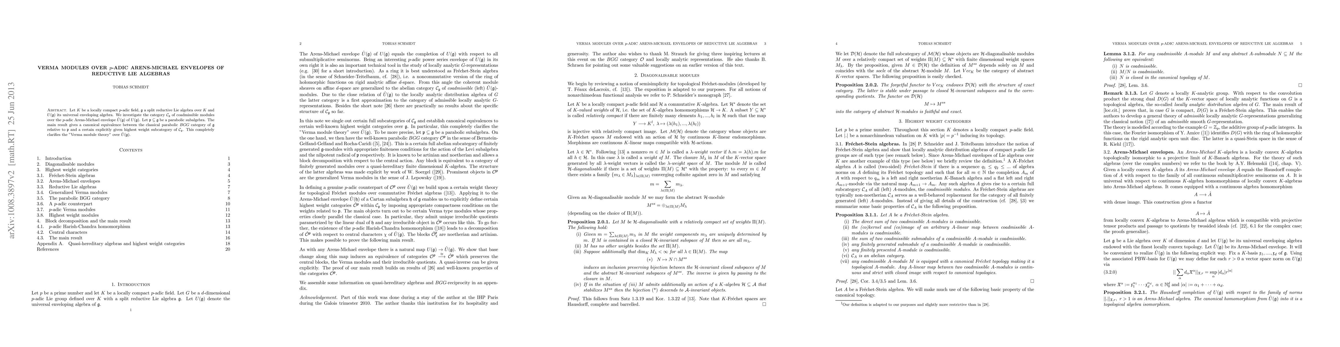 This paper investigates coadmissible modules over the Arens-Michael envelope of the universal enveloping algebra of a split reductive Lie algebra over a locally compact nonarchimedean field. It establishes an equivalence between a specified highest weight category within the module category and the classical parabolic BGG category.