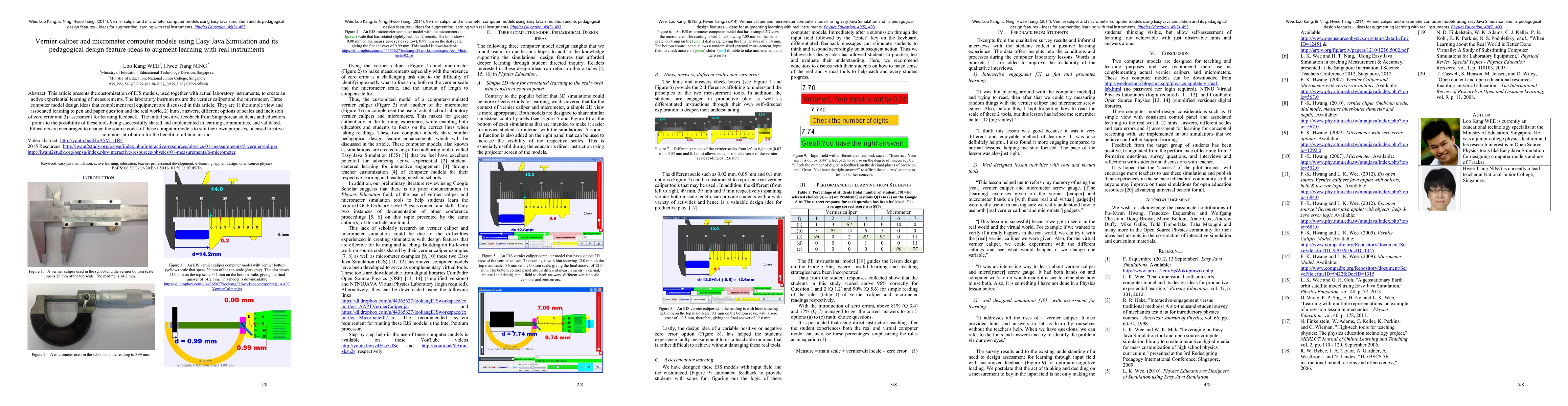 This paper details the development of Easy Java Simulation (EJS) models for vernier caliper and micrometer, enhancing hands-on learning with digital tools. Positive feedback from Singaporean students and educators suggests the models' effectiveness, encouraging adaptation and sharing under Creative Commons license for broader educational use.