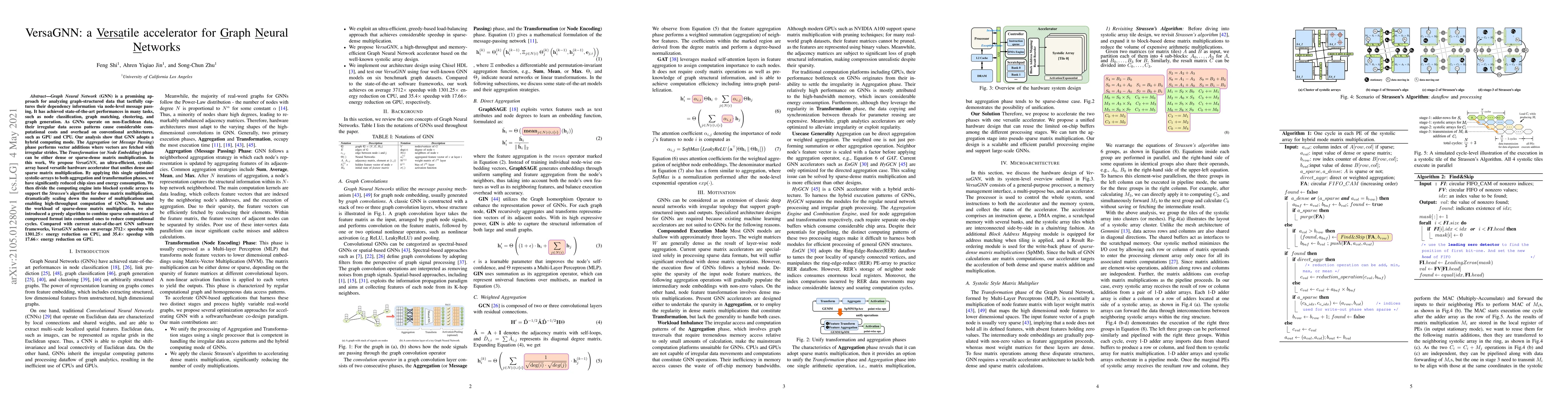 VersaGNN is a novel systolic-array-based hardware accelerator designed to efficiently handle the computational demands of Graph Neural Networks (GNNs). It significantly reduces chip sizes and energy consumption by optimizing both aggregation and transformation phases, achieving substantial speedups and energy reductions compared to existing software frameworks.