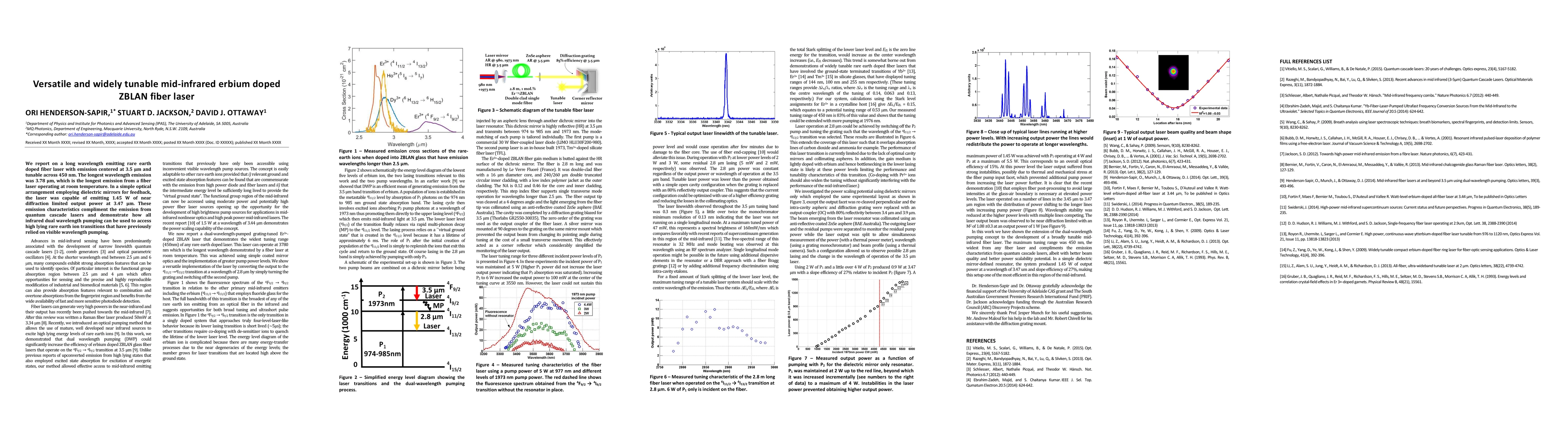 This paper presents a highly tunable erbium-doped ZBLAN fiber laser emitting at 3.5 μm and tunable over 450 nm, achieving the longest wavelength emission at 3.78 μm at room temperature. The laser can output 1.45 W of near diffraction-limited power, enabling dual wavelength pumping for accessing high rare earth ion transitions.