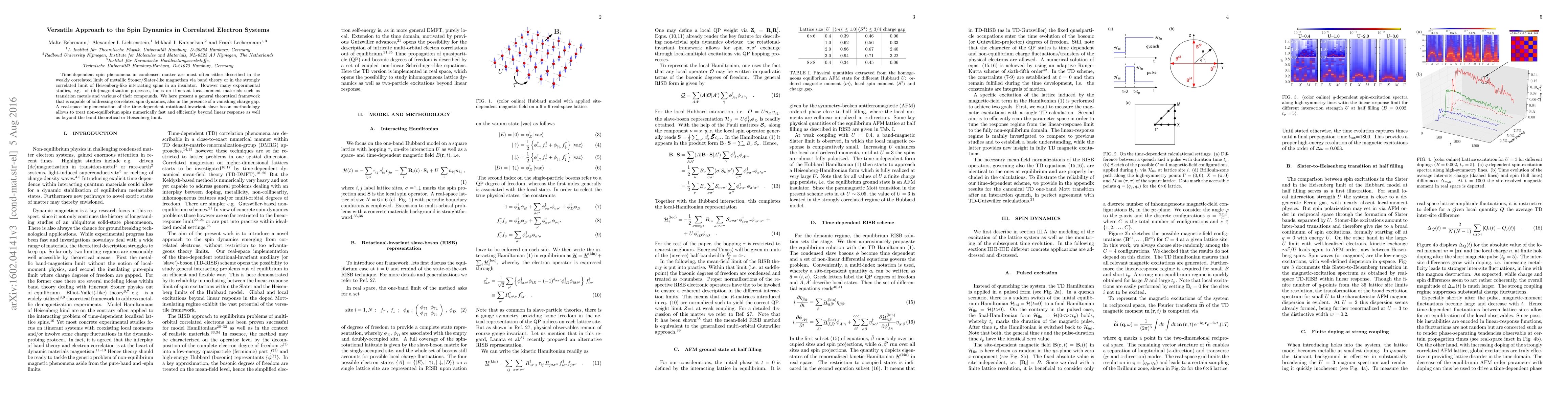 The paper introduces a versatile theoretical framework based on the time-dependent rotational-invariant slave boson methodology to study spin dynamics in correlated electron systems, especially focusing on itinerant local-moment materials. This real-space implementation can efficiently handle non-equilibrium spin phenomena beyond linear response, transcending the traditional band-theoretical and Heisenberg models.