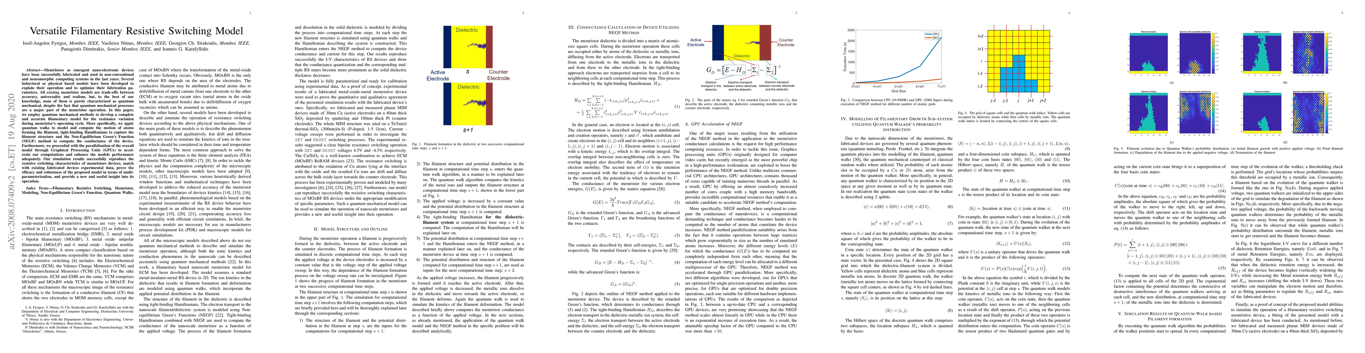 Memristors as emergent nano-electronic devices have been successfully fabricated and used in non-conventional and neuromorphic computing systems in the last years. Several behavioral or physical based models have been developed to explain their operation and to optimize their fabrication parameters. All existing memristor models are trade-offs between accuracy, universality and realism, but, to the best of our knowledge, none of them is purely characterized as quantum mechanical, despite the fact that quantum mechanical processes are a major part of the memristor operation. In this paper, we employ quantum mechanical methods to develop a complete and accurate filamentary model for the resistance variation during memristor's operating cycle. More specifically, we apply quantum walks to model and compute the motion of atoms forming the filament, tight-binding Hamiltonians to capture the filament structure and the Non-Equilibrium Green's Function (NEGF) method to compute the conductance of the device. Furthermore, we proceeded with the parallelization of the overall model through Graphical Processing Units (GPUs) to accelerate our computations and enhance the model's performance adequately. Our simulation results successfully reproduce the resistive switching characteristics of memristors devices, match with existing fabricated devices experimental data, prove the efficacy and robustness of the proposed model in terms of multi-parameterization, and provide a new and useful insight into its operation.