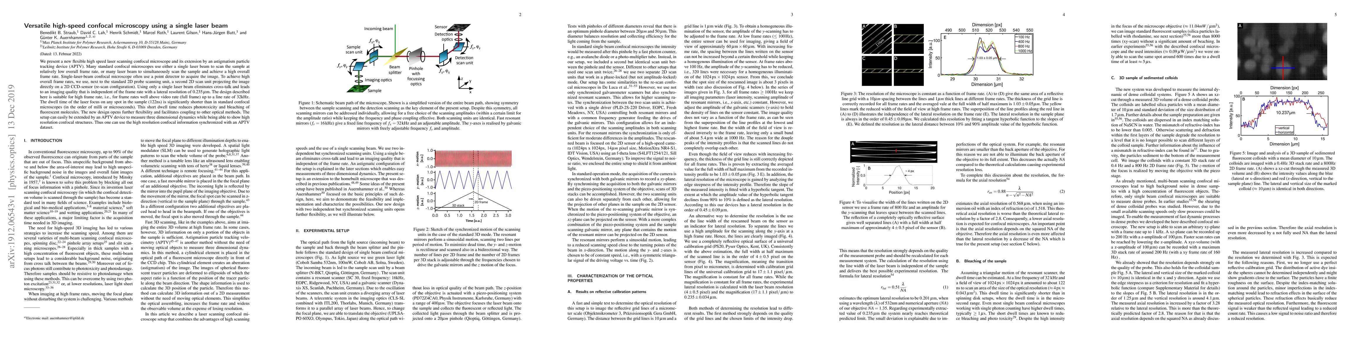 This paper introduces a high-speed confocal microscope utilizing a single laser beam and a dual-scan configuration to achieve frame rates up to 32kHz, significantly reducing phototoxicity. The design allows for high-resolution imaging independent of frame rate and can be extended with an astigmatism particle tracking device for synchronized 3D dynamics and confocal imaging.
