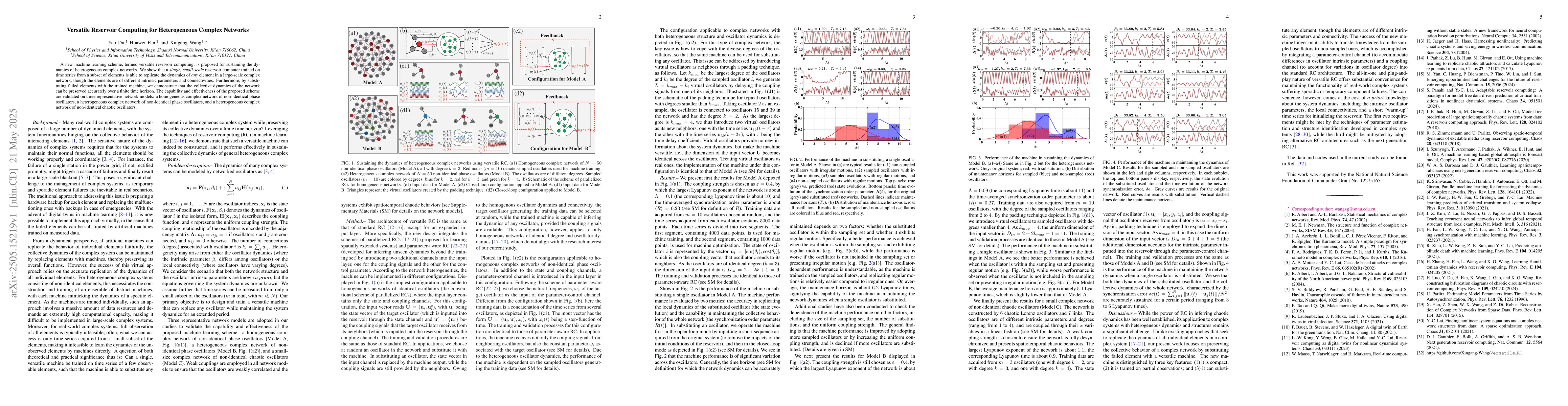 The research proposes a machine learning scheme, versatile reservoir computing, to maintain the dynamics of heterogeneous complex networks. It demonstrates that a single, small-scale reservoir computer trained on time series from a subset of elements can replicate the dynamics of any element in a large-scale complex network, regardless of their intrinsic parameters and connectivities.