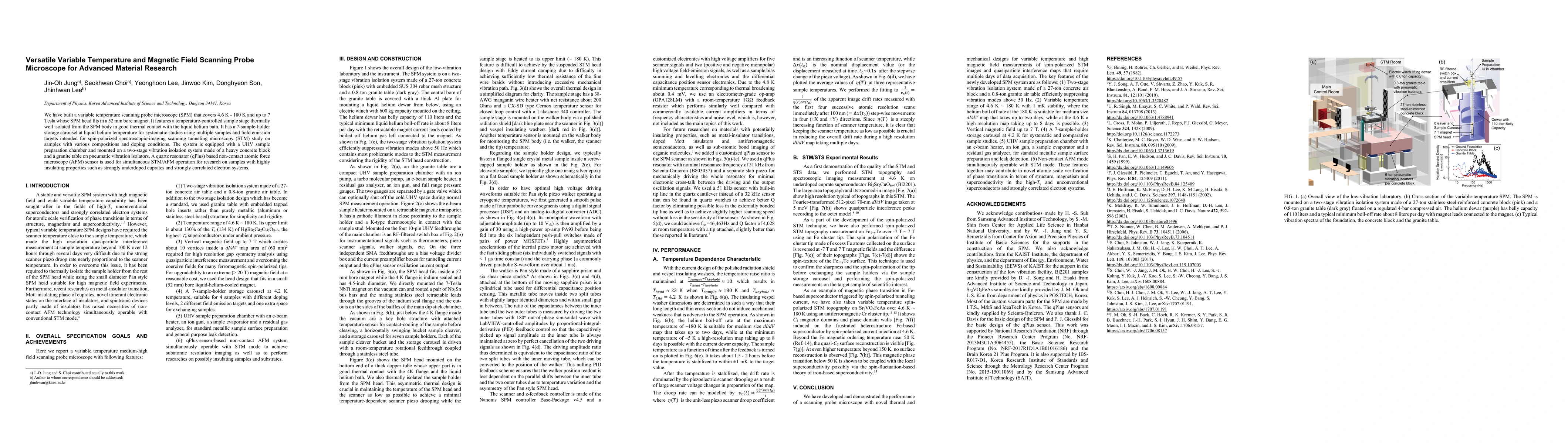 This paper describes a versatile variable temperature and magnetic field scanning probe microscope capable of operating from 4.6 K to 180 K and up to 7 Tesla, designed for advanced material research, including spin-polarized spectroscopic-imaging studies on various materials. The system features a UHV sample preparation chamber and a non-contact AFM sensor for simultaneous STM/AFM operations.