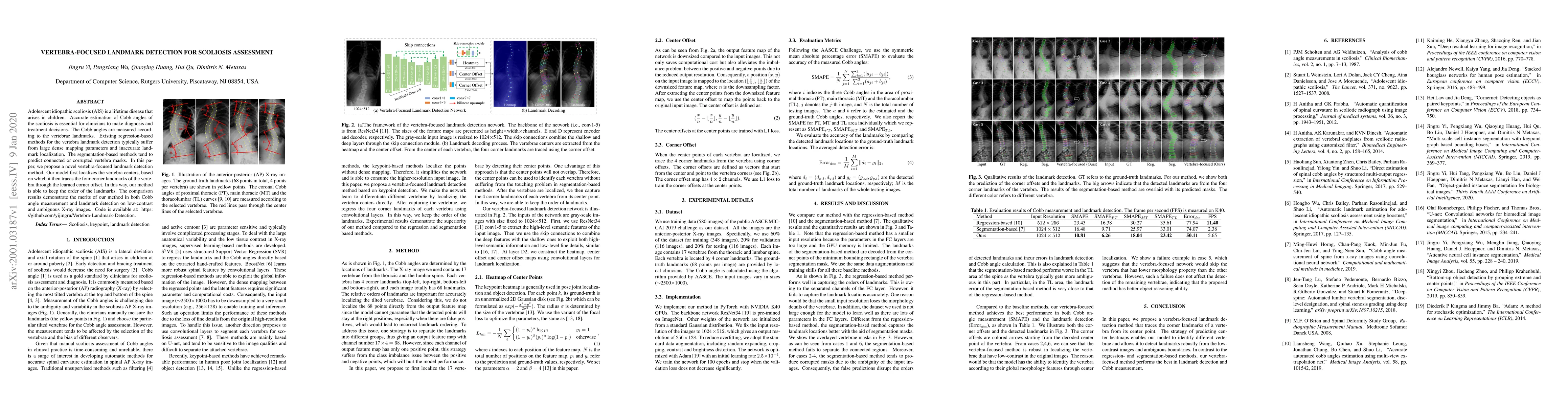This paper proposes a novel vertebra-focused landmark detection method for scoliosis assessment, which localizes vertebra centers and traces corner landmarks to accurately measure Cobb angles, improving upon existing regression and segmentation-based methods. The method demonstrates superior performance in detecting landmarks on low-contrast X-ray images.