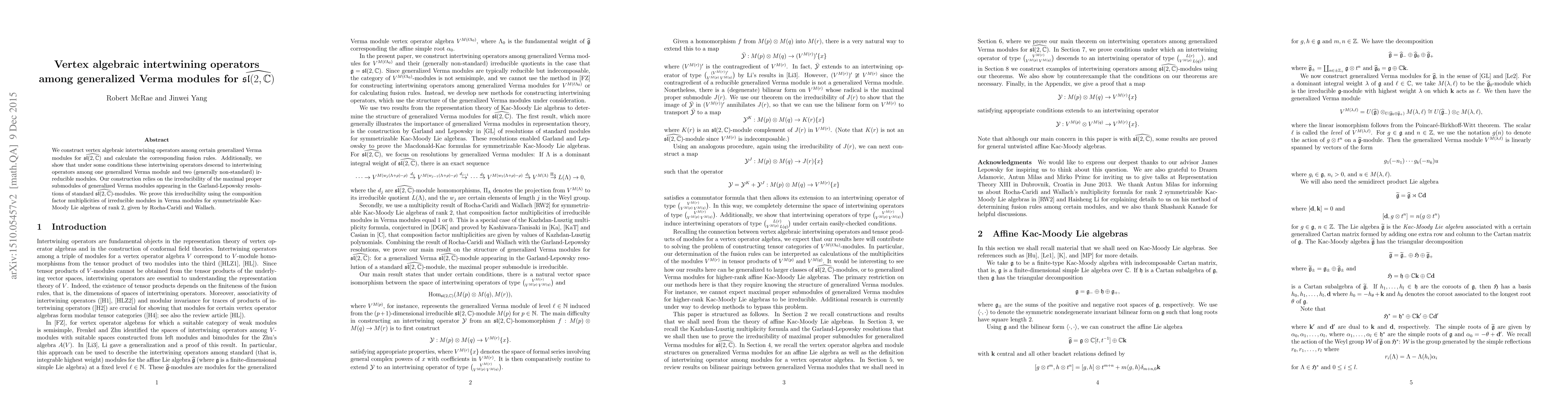 This paper constructs vertex algebraic intertwining operators for generalized Verma modules of $\widehat{\mathfrak{sl}(2,\mathbb{C})}$ and determines the corresponding fusion rules, demonstrating their descent to irreducible modules under certain conditions. The irreducibility is proven using composition factor multiplicities for symmetrizable Kac-Moody Lie algebras.