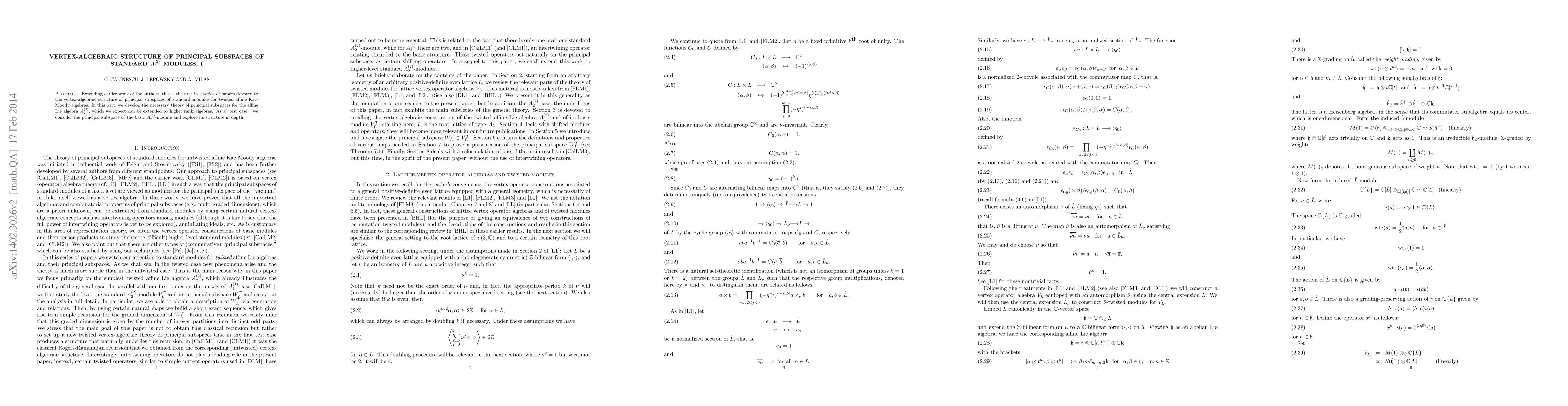 This paper develops the theory of principal subspaces for the affine Lie algebra A_2^{(2)}, focusing on the vertex-algebraic structure of the basic module's principal subspace. The authors aim to extend this theory to higher rank algebras and consider it as a foundational "test case."
