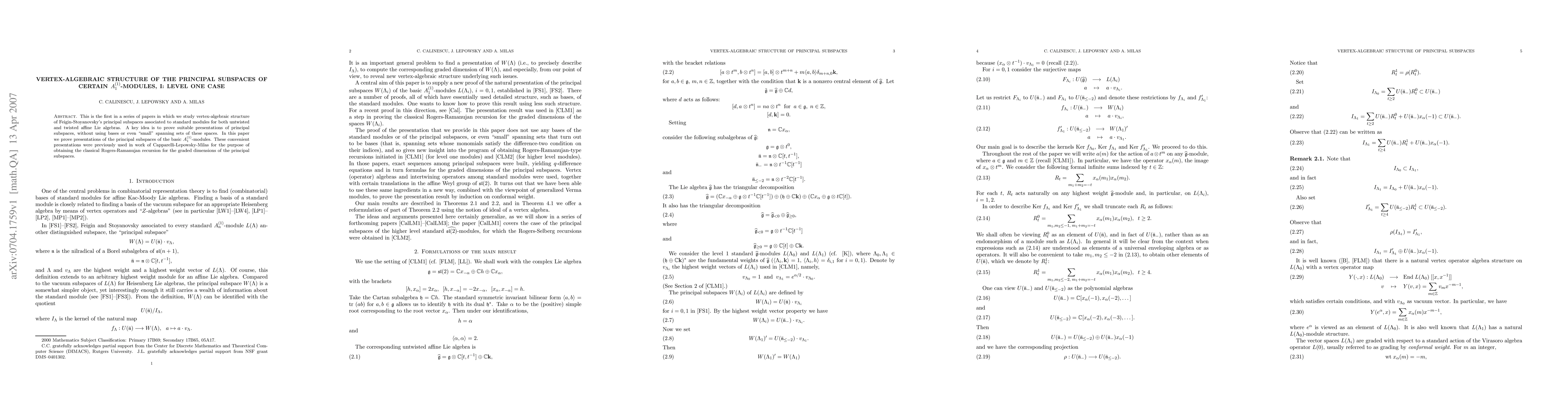 This is the first in a series of papers in which we study vertex-algebraic structure of Feigin-Stoyanovsky's principal subspaces associated to standard modules for both untwisted and twisted affine Lie algebras. A key idea is to prove suitable presentations of principal subspaces, without using bases or even ``small'' spanning sets of these spaces. In this paper we prove presentations of the principal subspaces of the basic A_1^(1)-modules. These convenient presentations were previously used in work of Capparelli-Lepowsky-Milas for the purpose of obtaining the classical Rogers-Ramanujan recursion for the graded dimensions of the principal subspaces.