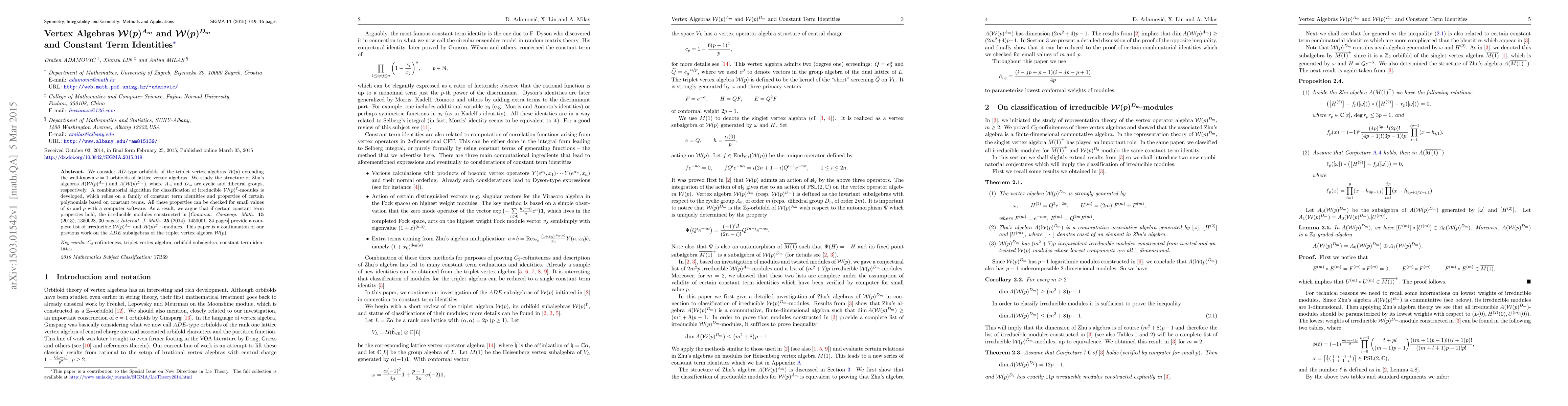 We consider $AD$-type orbifolds of the triplet vertex algebras $\mathcal{W}(p)$ extending the well-known $c=1$ orbifolds of lattice vertex algebras. We study the structure of Zhu's algebras $A(\mathcal{W}(p)^{A_m})$ and $A(\mathcal{W}(p)^{D_m})$, where $A_m$ and $D_m$ are cyclic and dihedral groups, respectively. A combinatorial algorithm for classification of irreducible $\mathcal{W}(p)^\Gamma$-modules is developed, which relies on a family of constant term identities and properties of certain polynomials based on constant terms. All these properties can be checked for small values of $m$ and $p$ with a computer software. As a result, we argue that if certain constant term properties hold, the irreducible modules constructed in [Commun. Contemp. Math. 15 (2013), 1350028, 30 pages, arXiv:1212.5453; Internat. J. Math. 25 (2014), 1450001, 34 pages, arXiv:1304.5711] provide a complete list of irreducible $\mathcal{W}(p)^{A_m}$ and $\mathcal{W}(p)^{D_m}$-modules. This paper is a continuation of our previous work on the $ADE$ subalgebras of the triplet vertex algebra $\mathcal{W}(p)$.
