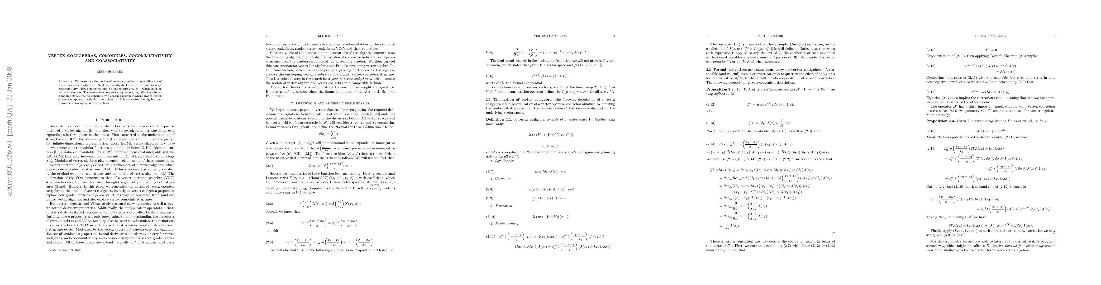 We introduce the notion of vertex coalgebra, a generalization of vertex operator coalgebras. Next we investigate forms of cocommutativity, coassociativity, skew-symmetry, and an endomorphism, $D^*$, which hold on vertex coalgebras. The former two properties require grading. We then discuss comodule structure. We conclude by discussing instances where graded vertex coalgebras appear, particularly as related to Primc's vertex Lie algebra and (universal) enveloping vertex algebras.