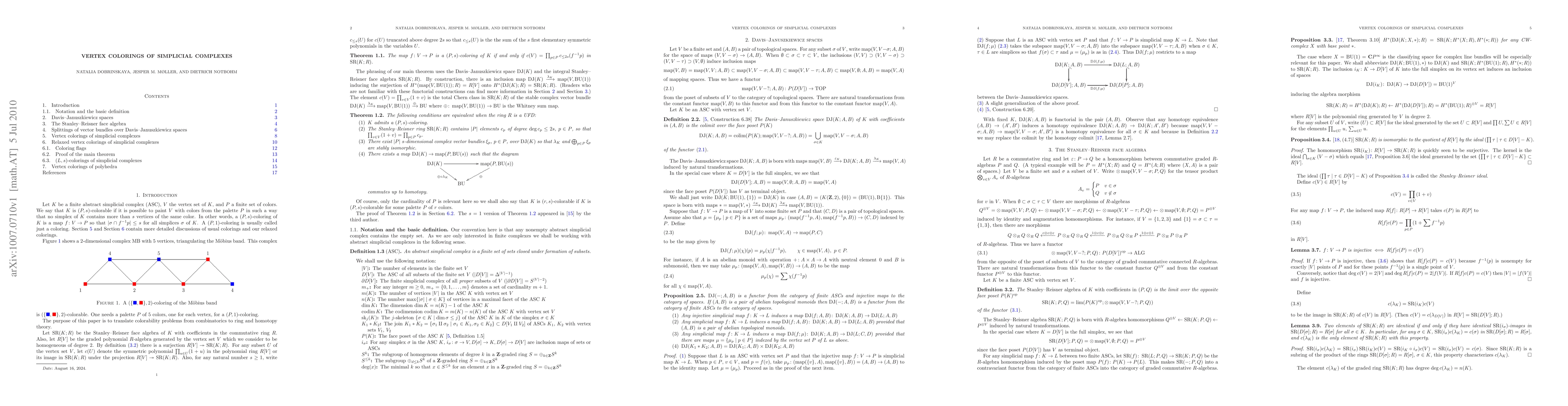 This paper defines (r,s)-colorings for abstract simplicial complexes, where r colors are used such that no simplex contains more than s vertices of the same color. It explores the topological and algebraic implications, linking the problem to vector bundles over Davis-Januszkiewicz spaces and factorizations in Stanley-Reisner rings.