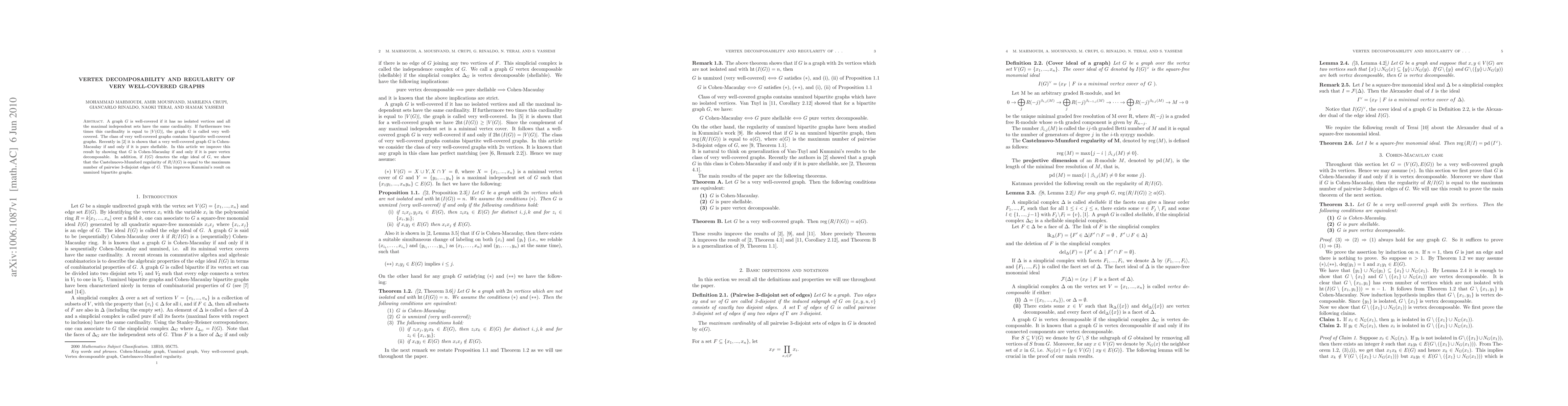 This paper investigates the properties of very well-covered graphs, proving that they are Cohen-Macaulay if and only if they are pure vertex decomposable. It also establishes that the Castelnuovo-Mumford regularity of the edge ideal of a very well-covered graph equals the maximum number of pairwise 3-disjoint edges in the graph, improving upon previous results for unmixed bipartite graphs.