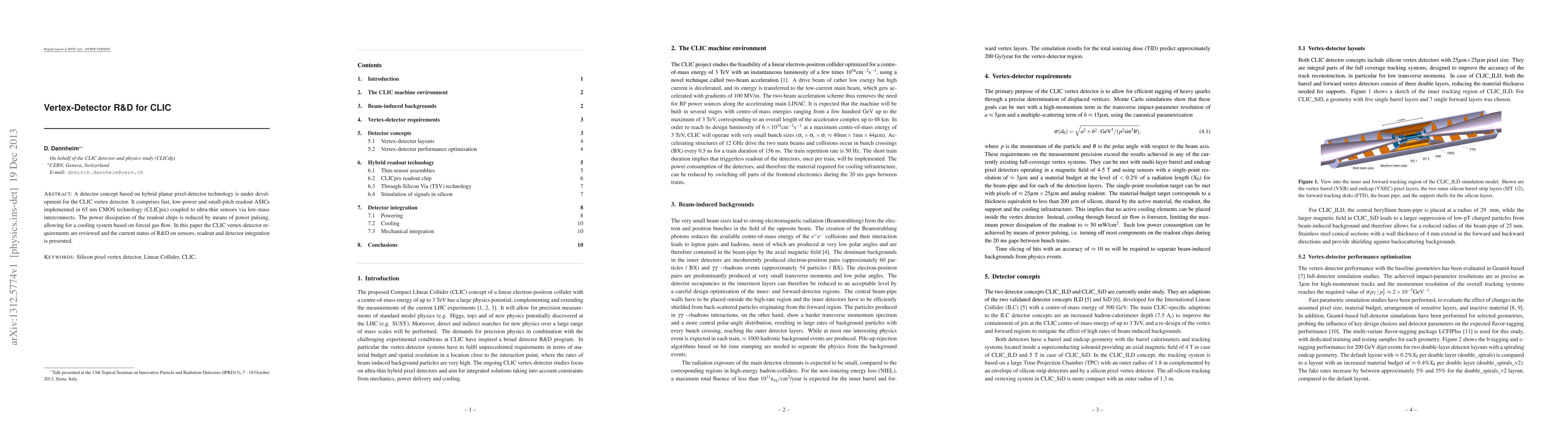 This paper reviews the development of a hybrid planar pixel-detector for the CLIC vertex detector, utilizing fast, low-power ASICs in 65 nm CMOS technology coupled with ultra-thin sensors. The research focuses on reducing power dissipation through power pulsing and integrating these components into a cooling system based on forced gas flow.