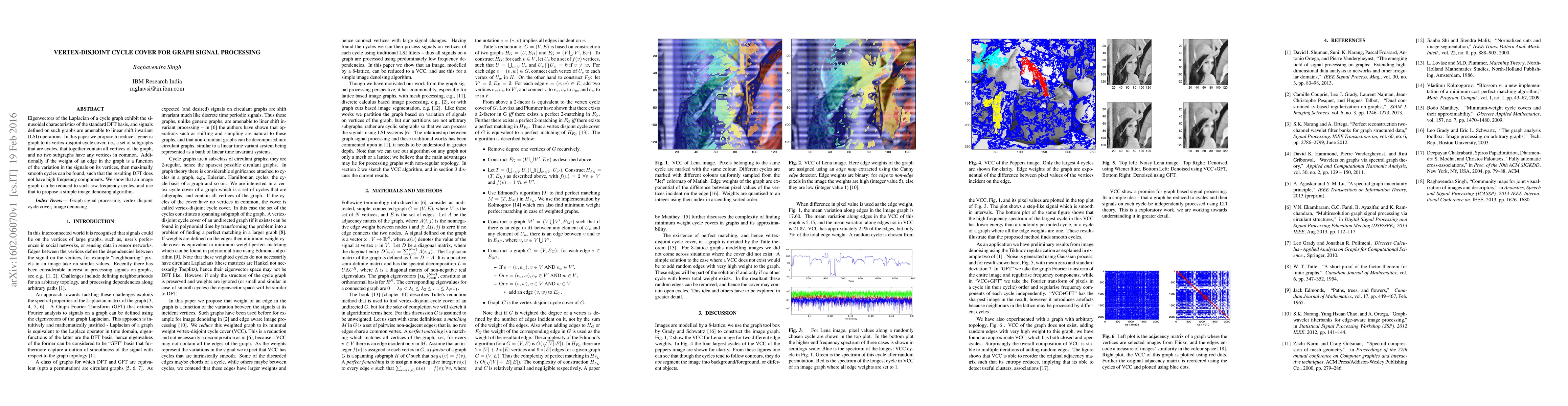 The novelty of this work lies in its approach to graph signal processing by reducing graphs to vertex-disjoint cycles, enabling the use of LSI systems for signal processing. This method is particularly valuable for non-regular graph topologies and has been demonstrated with image denoising.