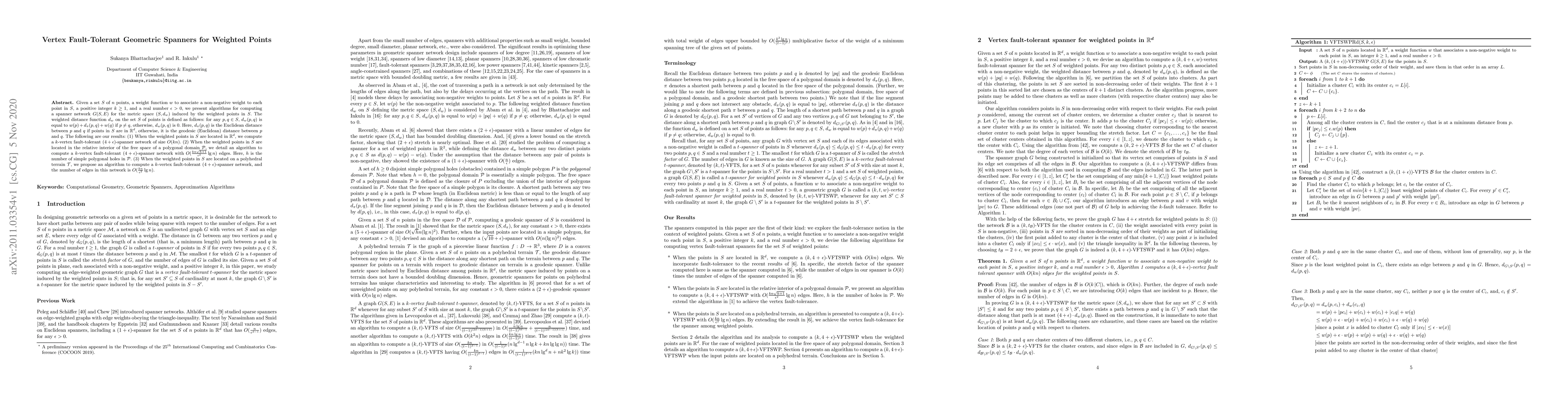 Given a set S of n points, a weight function w to associate a non-negative weight to each point in S, a positive integer k \ge 1, and a real number \epsilon > 0, we present algorithms for computing a spanner network G(S, E) for the metric space (S, d_w) induced by the weighted points in S. The weighted distance function d_w on the set S of points is defined as follows: for any p, q \in S, d_w(p, q) is equal to w(p) + d_\pi(p, q) + w(q) if p \ne q, otherwise, d_w(p, q) is 0. Here, d_\pi(p, q) is the Euclidean distance between p and q if points in S are in \mathbb{R}^d, otherwise, it is the geodesic (Euclidean) distance between p and q. The following are our results: (1) When the weighted points in S are located in \mathbb{R}^d, we compute a k-vertex fault-tolerant (4+\epsilon)-spanner network of size O(k n). (2) When the weighted points in S are located in the relative interior of the free space of a polygonal domain \cal P, we detail an algorithm to compute a k-vertex fault-tolerant (4+\epsilon)-spanner network with O(\frac{kn\sqrt{h+1}}{\epsilon^2} \lg{n}) edges. Here, h is the number of simple polygonal holes in \cal P. (3) When the weighted points in S are located on a polyhedral terrain \cal T, we propose an algorithm to compute a k-vertex fault-tolerant (4+\epsilon)-spanner network, and the number of edges in this network is O(\frac{kn}{\epsilon^2} \lg{n}).