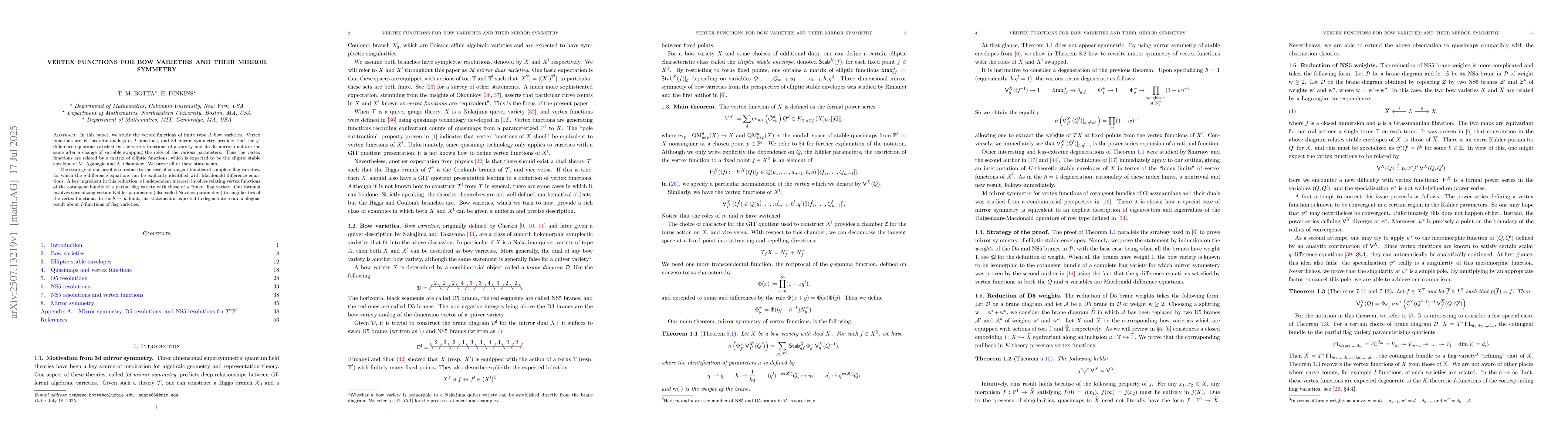 In this paper, we study the vertex functions of finite type $A$ bow varieties. Vertex functions are $K$-theoretic analogs of $I$-functions, and 3d mirror symmetry predicts that the $q$-difference equations satisfied by the vertex functions of a variety and its 3d mirror dual are the same after a change of variable swapping the roles of the various parameters. Thus the vertex functions are related by a matrix of elliptic functions, which is expected to be the elliptic stable envelope of M. Aganagic and A. Okounkov. We prove all of these statements. The strategy of our proof is to reduce to the case of cotangent bundles of complete flag varieties, for which the $q$-difference equations can be explicitly identified with Macdonald difference equations. A key ingredient in this reduction, of independent interest, involves relating vertex functions of the cotangent bundle of a partial flag variety with those of a ``finer" flag variety. Our formula involves specializing certain K\"ahler parameters (also called Novikov parameters) to singularities of the vertex functions. In the $\hbar \to \infty$ limit, this statement is expected to degenerate to an analogous result about $I$-functions of flag varieties.