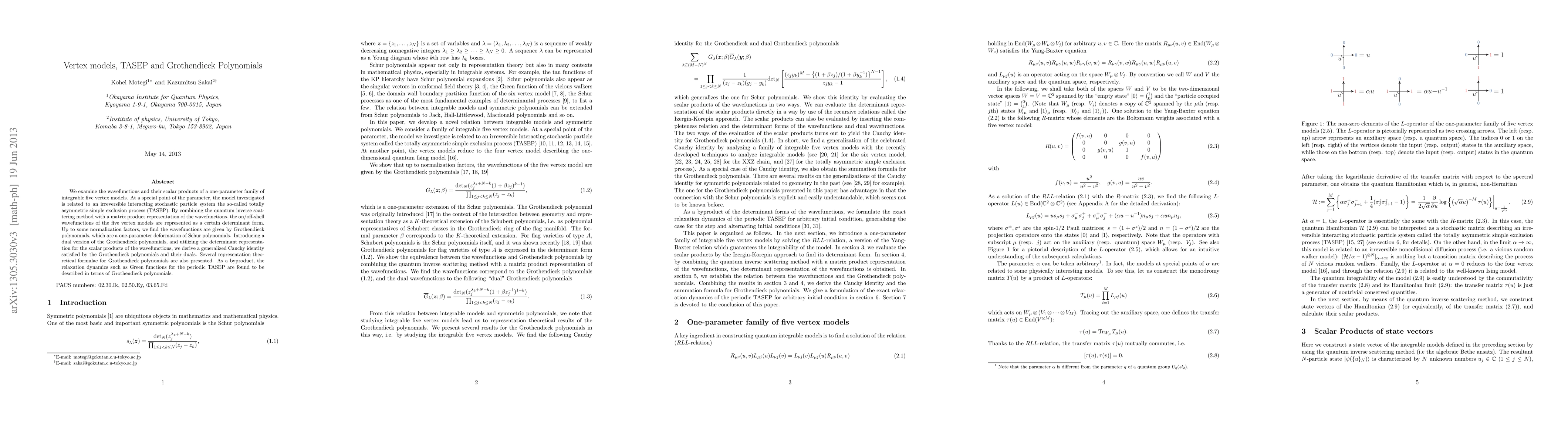 We examine the wavefunctions and their scalar products of a one-parameter family of integrable five vertex models. At a special point of the parameter, the model investigated is related to an irreversible interacting stochastic particle system the so-called totally asymmetric simple exclusion process (TASEP). By combining the quantum inverse scattering method with a matrix product representation of the wavefunctions, the on/off-shell wavefunctions of the five vertex models are represented as a certain determinant form. Up to some normalization factors, we find the wavefunctions are given by Grothendieck polynomials, which are a one-parameter deformation of Schur polynomials. Introducing a dual version of the Grothendieck polynomials, and utilizing the determinant representation for the scalar products of the wavefunctions, we derive a generalized Cauchy identity satisfied by the Grothendieck polynomials and their duals. Several representation theoretical formulae for Grothendieck polynomials are also presented. As a byproduct, the relaxation dynamics such as Green functions for the periodic TASEP are found to be described in terms of Grothendieck polynomials.