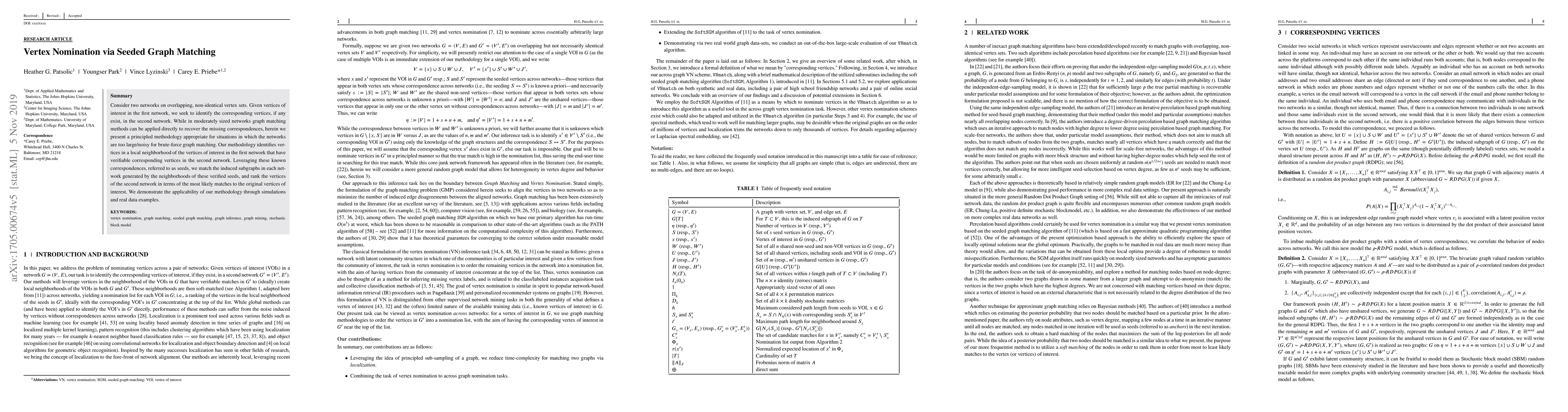 A new method for identifying corresponding vertices in overlapping networks is proposed, leveraging a 'seed' approach to accelerate the matching process in large networks.