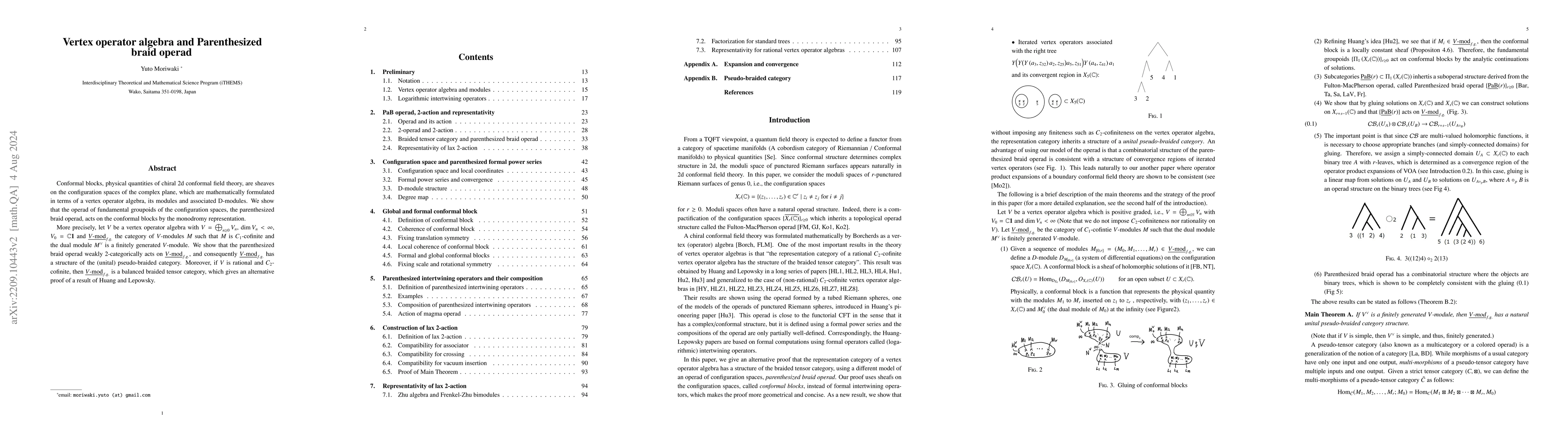 The colored parenthesized braid operad is a sequence of full subcategories of the fundamental groupoids of the configuration spaces of the complex plane, and a conformal block, a physical quantity of chiral two-dimensional conformal field theory, is a sheaf on the configuration space, which is mathematically formulated in terms of a vertex operator algebra and its modules. In this paper we show that the colored parenthesized braid operad acts weakly 2-categorically on a module category of a vertex operator algebra whose object is a module $M$ such that $M$ and $M^\vee$ are $C_1$-cofinite. If this action induces a 1-categorical action, then the module category inherits a balanced braided tensor category structure, which is shown for a rational $C_2$-cofinite vertex operator algebra. This gives an alternative proof of a result of Huang and Lepowsky.
