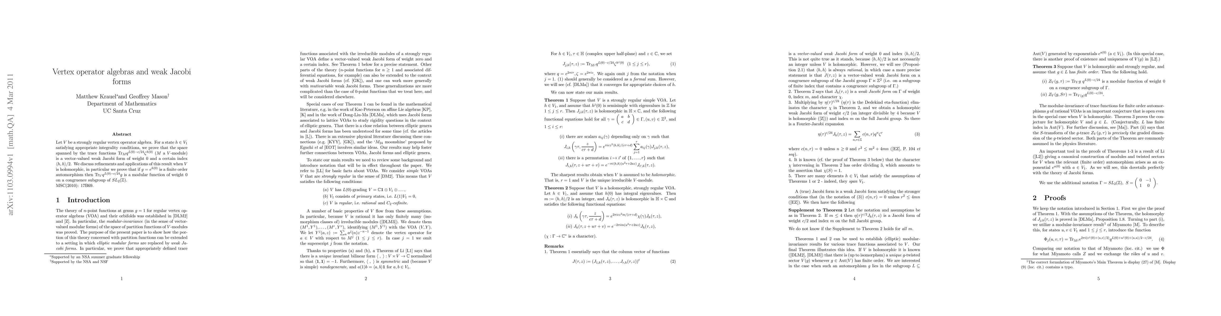 $V$-module) is a vector-valued weak Jacobi form of weight 0 and a certain index