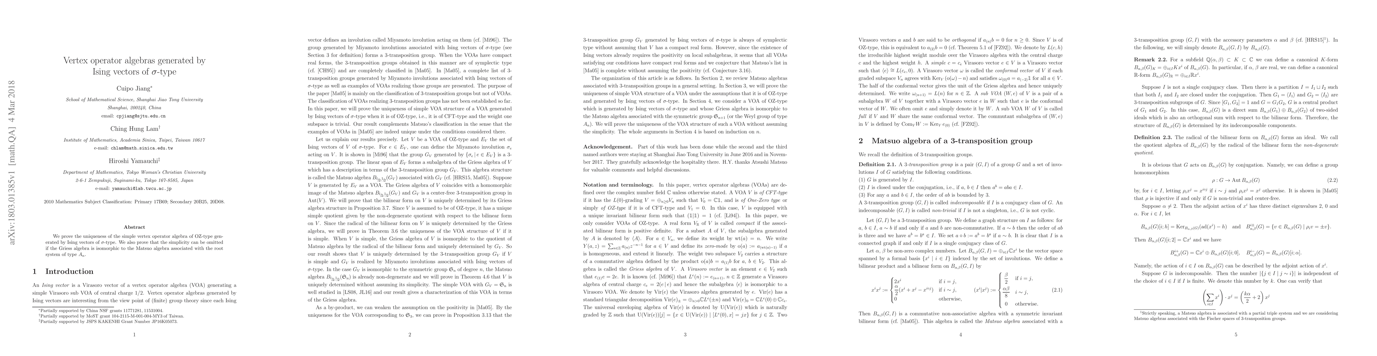 This paper proves that vertex operator algebras generated by Ising vectors of σ-type are unique and simple, with simplicity omitted if the Griess algebra is isomorphic to the Matsuo algebra associated with root system type A_n.