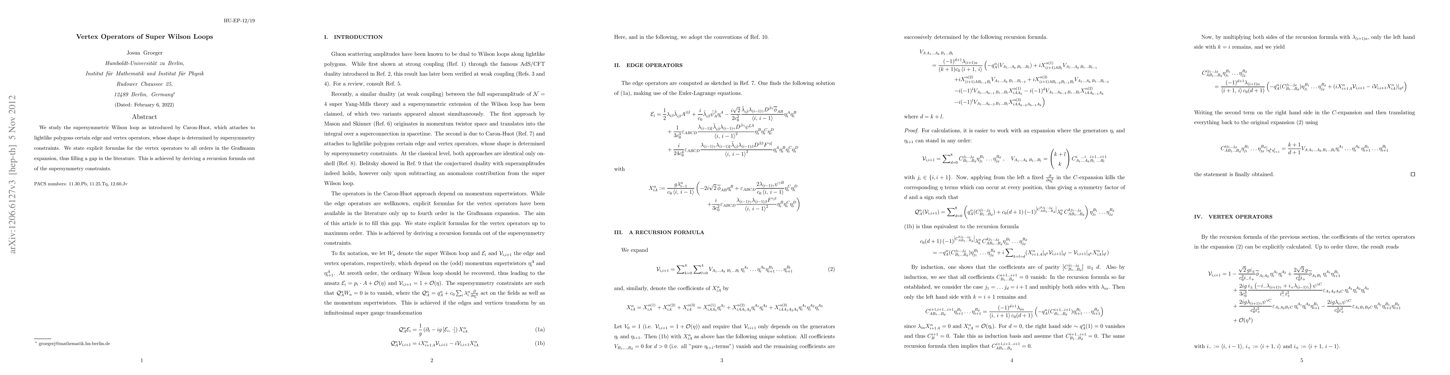 We study the supersymmetric Wilson loop as introduced by Caron-Huot, which attaches to lightlike polygons certain edge and vertex operators, whose shape is determined by supersymmetry constraints. We state explicit formulas for the vertex operators to all orders in the Gra{\ss}mann expansion, thus filling a gap in the literature. This is achieved by deriving a recursion formula out of the supersymmetry constraints.