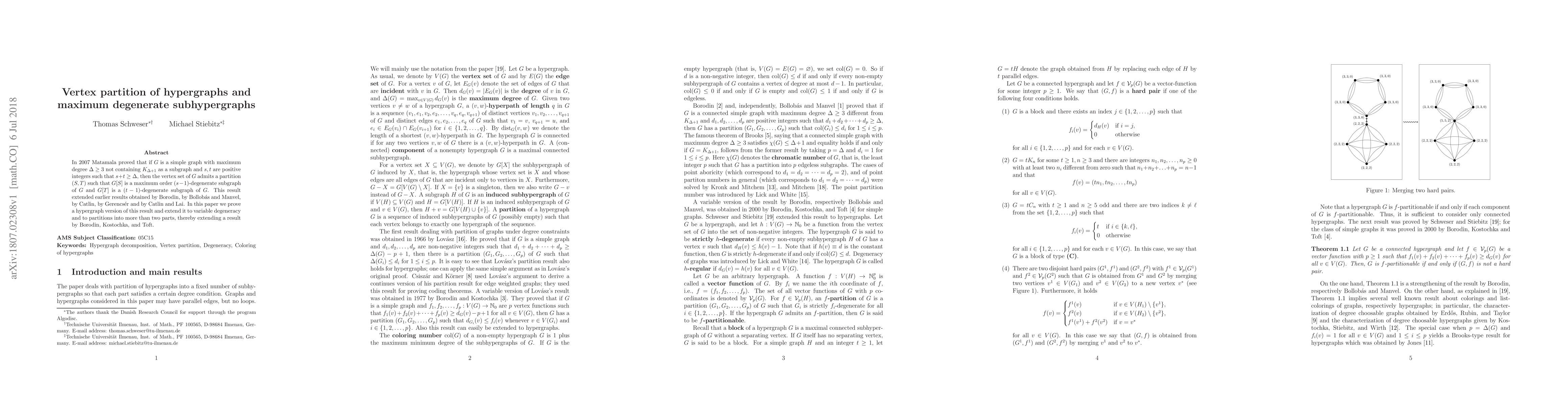 In 2007 Matamala proved that if $G$ is a simple graph with maximum degree $\Delta\geq 3$ not containing $K_{\Delta +1}$ as a subgraph and $s, t$ are positive integers such that $s+t \geq \Delta$, then the vertex set of $G$ admits a partition $(S,T)$ such that $G[S]$ is a maximum order $(s-1)$-degenerate subgraph of $G$ and $G[T]$ is a $(t-1)$-degenerate subgraph of $G$. This result extended earlier results obtained by Borodin, by Bollob\'as and Manvel, by Catlin, by Gerencs\'{e}r and by Catlin and Lai. In this paper we prove a hypergraph version of this result and extend it to variable degeneracy and to partitions into more than two parts, thereby extending a result by Borodin, Kostochka, and Toft.