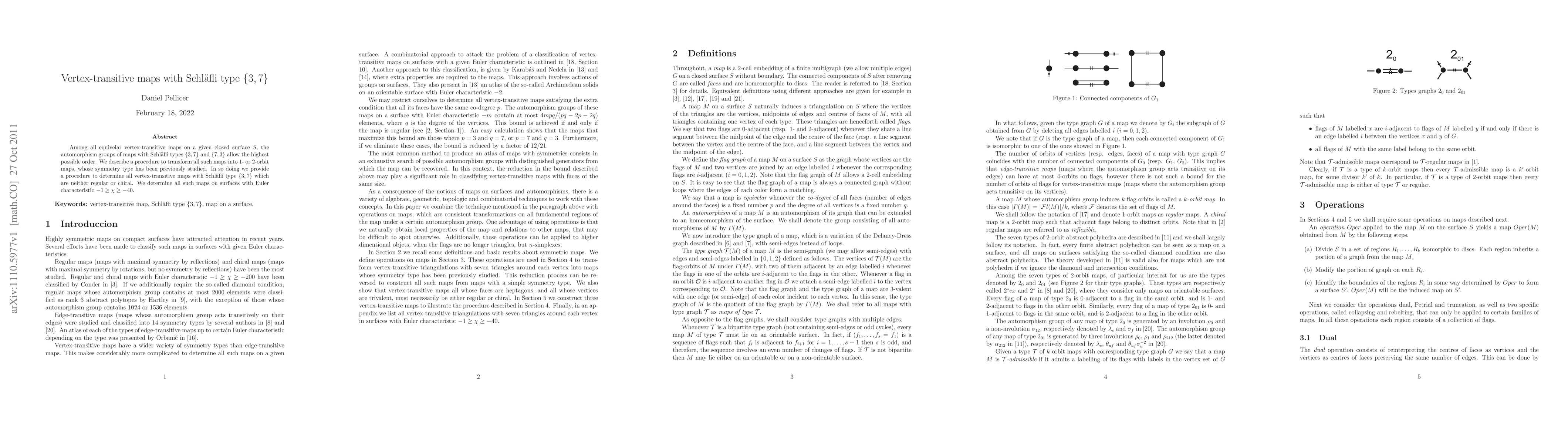 Among all equivelar vertex-transitive maps on a given closed surface S, the automorphism groups of maps with Schl\"afli types {3, 7} and {7, 3} allow the highest possible order. We describe a procedure to transform all such maps into 1- or 2-orbit maps, whose symmetry type has been previously studied. In so doing we provide a procedure to determine all vertex-transitive maps with Schl\"afli type {3, 7} which are neither regular or chiral. We determine all such maps on surfaces with Euler characteristic -1 \geq \c{hi} \geq -40.